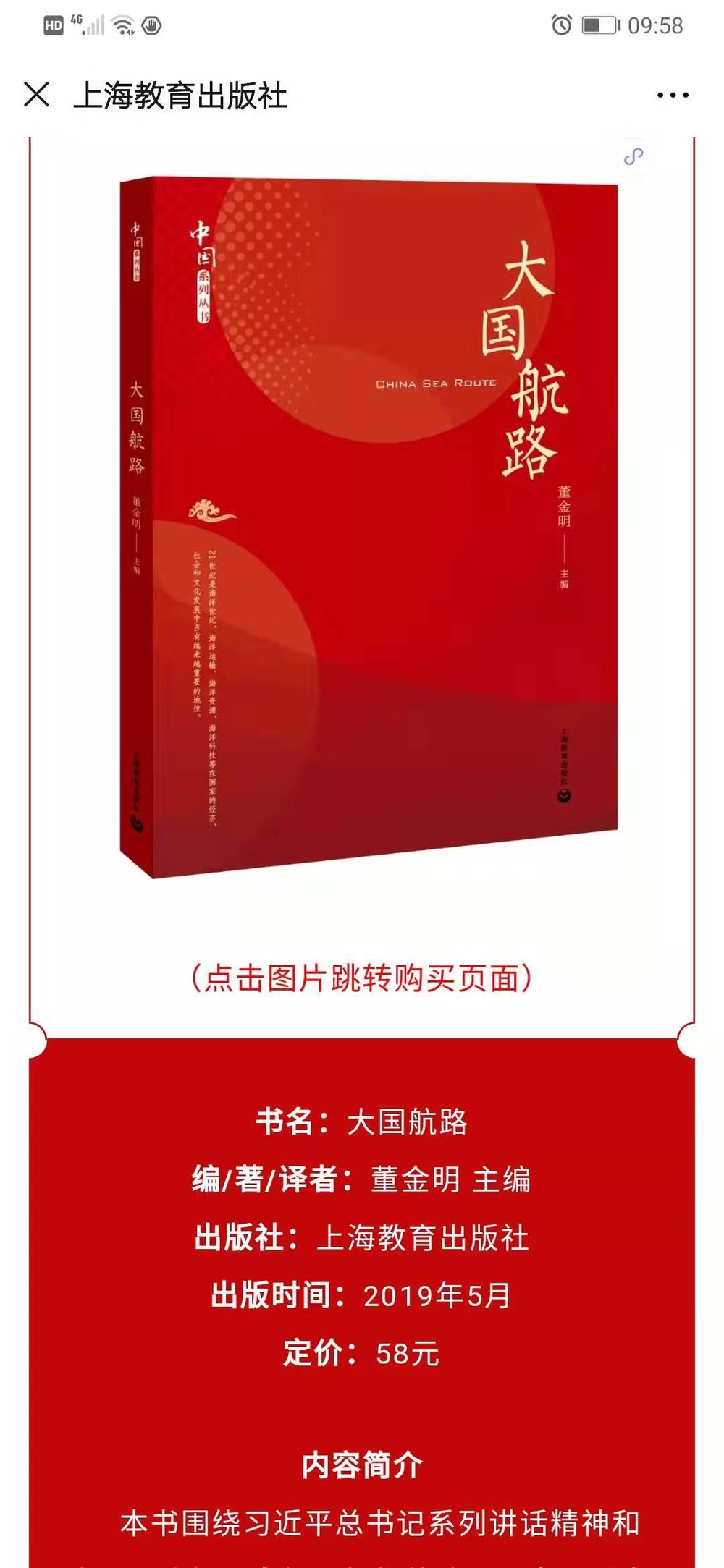 我校董金明教授主编的《大国航路》被列入上海教育出版社国庆献礼系列书单
