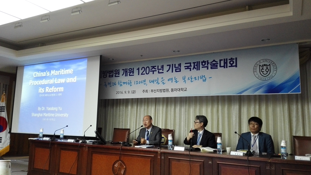 上海海事大学法学院于耀东博士应邀参会并就中国海事诉讼法及其改革发表了演讲,与韩国法官、律师和其他国家参会代表进行了交流。