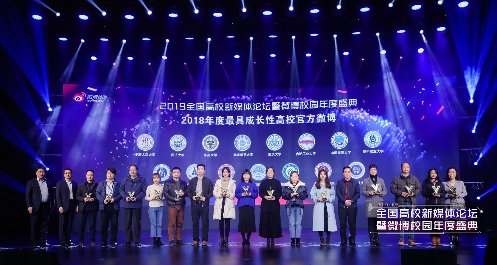 论坛对高教类官方微博进行了表彰,教育部官方微博“微言教育”、中华全国学联等10个官博获得“2018年度最具影响力教育政务新媒体”;北京大学、浙江大学等10所高校获得“2018年度最具影响力高校官方微博”;我校和中国人民大学、同济大学、北京师范大学等15所高校获“2018年度最具成长性高校官方微博”称号。
