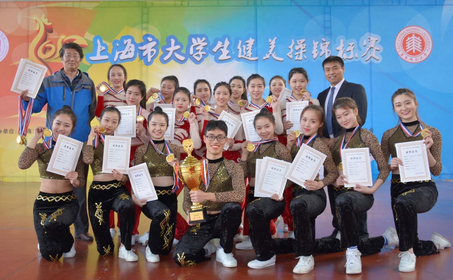 12月23日、24日,上海市大学生健美操锦标赛在华东师范大学拉开序幕。我校健美操队在4个项目的比赛中,荣获3金1银和团体第一名的好成绩。这是我校健美操队连续十年荣获上海市高校健美操团体第一名。上海市大学生体育协会会长薛明扬、上海市教育委员会体育卫生艺术科普处处长丁力等为获奖运动员颁奖。
