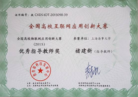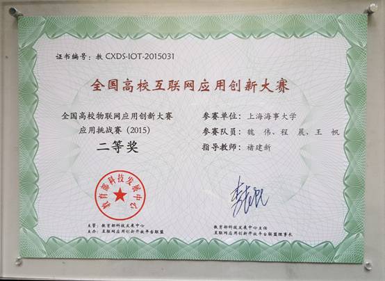 10月21日,由教育部科技发展中心、互联网应用创新开放平台联盟主办的第二届全国高校互联网应用创新大赛在江苏无锡市落下帷幕。上海海事大学科学研究院3名研究生魏伟、程晨、王帆同学在褚建新教授的指导下,取得“应用挑战赛”二等奖的好成绩,褚建新教授荣获“优秀指导教师奖”。