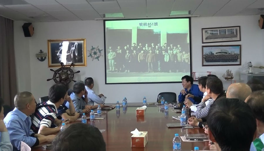 轮机851班班长黄闻雄概述了班级同学的有关情况,回顾了在民生路校区的求学历程,感慨校园翻天覆地的变化,并祝福全班同学身体健康、阖家幸福。