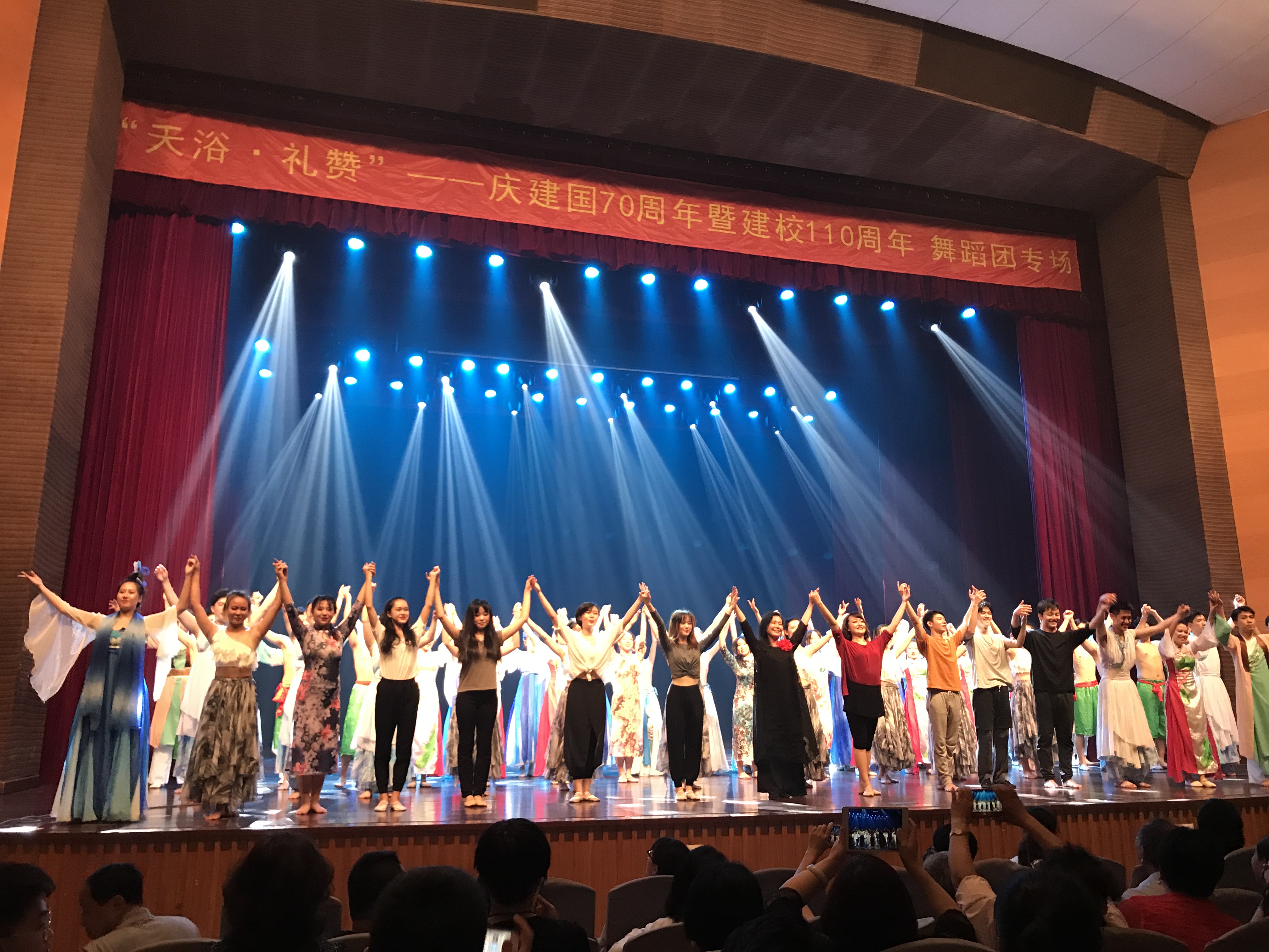 6月5日,上海海事大学校舞蹈团在大礼堂举行了“献礼上海海事大学110周年校庆——天浴·礼赞”2019年专场演出。演出邀请了我校舞蹈团指导老师程扬参演,师生代表共同观看了演出。