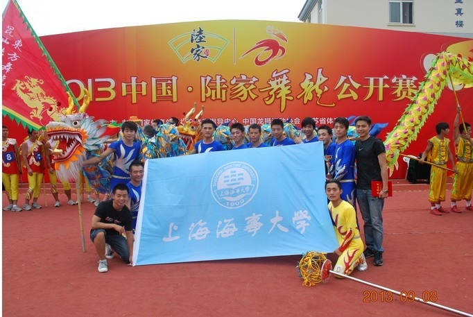 9月6日至10日,由国家体育总局社体指导中心、中国龙狮运动协会主办的“2013年中国陆家舞龙公开赛”在江苏省昆山市举行。上海海事大学舞龙队在比赛中荣获季军。