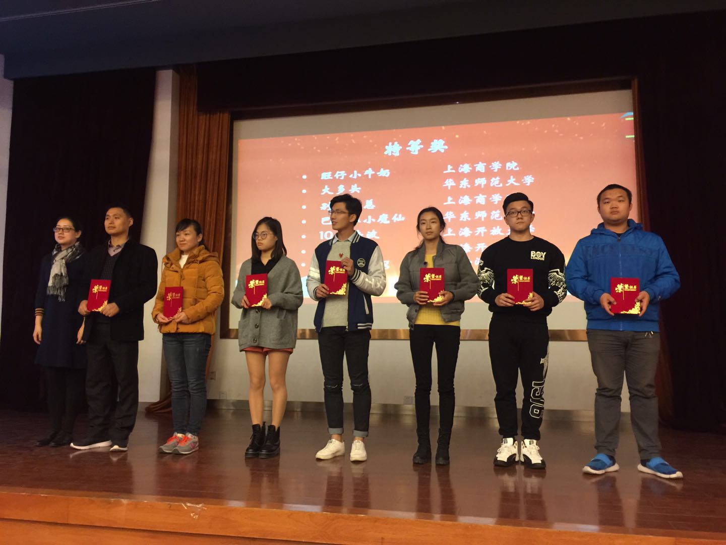 其中,曹溟铄、王浩、李万秀、姜晶伟、常然等学生组成的团队“卧龙山大王”获得上海市特等奖。时睿、洪文姣、孙纹、徐昊、张倩倩、毋亚昀、张昊、张思宇、陈雪柔、许会芬等学生组成的10个团队(共38人)获得上海市一等奖。周诗宇、史华杰、李茜哲、张筱韵、曾叙砜、朱莹佳、解煌鸣、施金钰等学生组成的8个团队(共32人)获得上海市二等奖。程谙译、张竞文、顾懿、王文婧、吴桐等学生组成的5个团队(共20人)获得上海市三等奖。另外,我校经济管理学院陈倩、黄宗盛、劳知雷、李毅、马卉、马中华、杨娜,信息工程学院安博文、陈敦耀、李万秀、裴育,交通运输学院陈万里、都志亮、刘伟、孙领等老师分别荣获“优秀指导教师”荣誉称号。