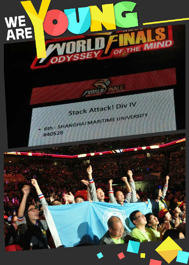 美国当地时间5月25日至29日,第37届世界头脑奥林匹克大赛(Odyessy of the Mind)决赛在爱荷华州立大学举行。在比赛中,来自17个国家的800多支代表队进行了激烈角逐。最终,上海海事大学代表队获得该项目大学组总决赛第六名。