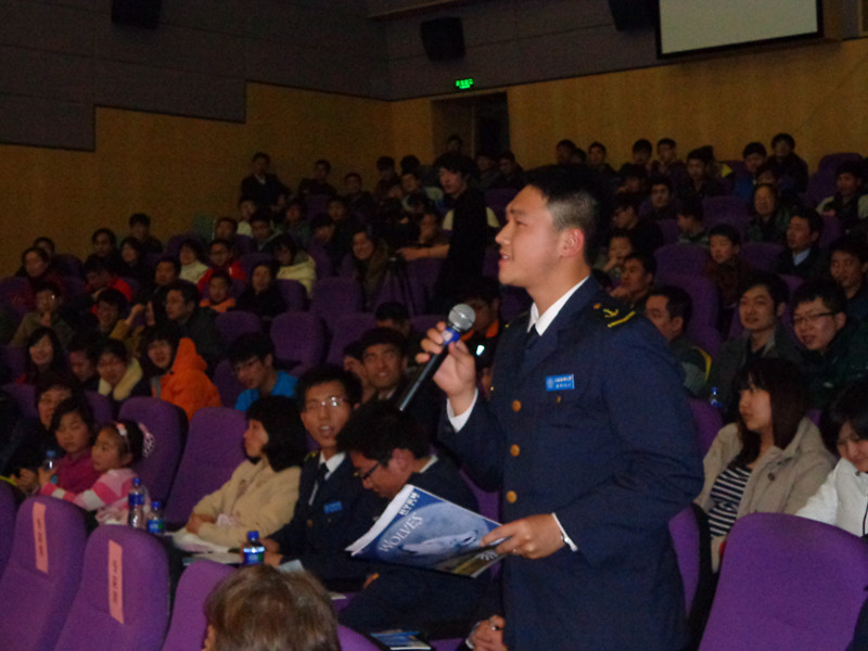 中国船舶重工集团公司第七〇二研究所“蛟龙号”总设计师徐芑南研究员从研制 “蛟龙号”载人潜水器的原因,“蛟龙号”设计、加工制造、总装陆上水池联调与海试四个阶段的研制过程,“蛟龙号”载人潜水器的应用情景和进一步开展深海研究工作的突破点这四个方面,向学生们介绍了蛟龙号的研制历程、技术水平和应用前景。中船重工第七〇二研究所水下工程设计室主任胡震逐一讲解了“蛟龙号”的关键技术、应用和发展趋势。水下工程研究设计室副主任、高级工程师叶聪结合自身研制和海试“蛟龙号”的经历,生动的讲解了深潜员的工作内容和心得体会。