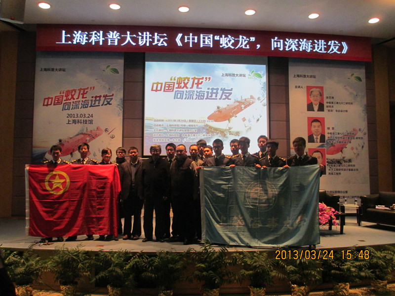 3月24日, 上海科技馆科普大讲坛围绕“蛟龙号”开讲。上海海事大学商船学院学生参加了此次《中国“蛟龙”向深海进发》科普讲座。