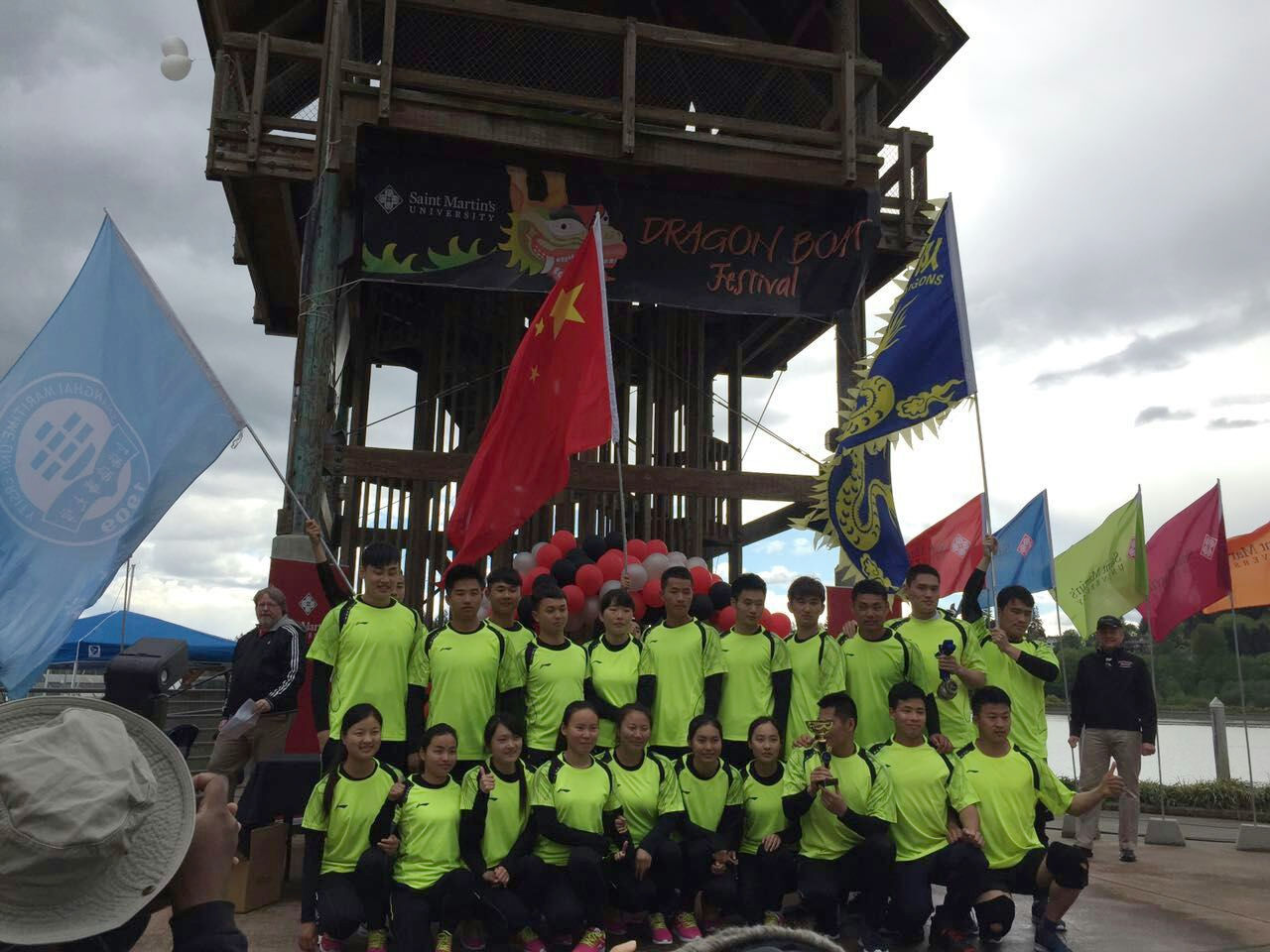 美国当地时间2015年4月25日,华盛顿州第十届龙舟邀请赛在奥林匹亚市举行。本次比赛由我校友好学校圣马丁大学承办,来自当地各地区以及社团的代表队,以及上海海事大学、上海中医药大学共42支队伍5000多名队员参加了比赛。我校龙舟队技压群雄,再次夺得比赛冠军。