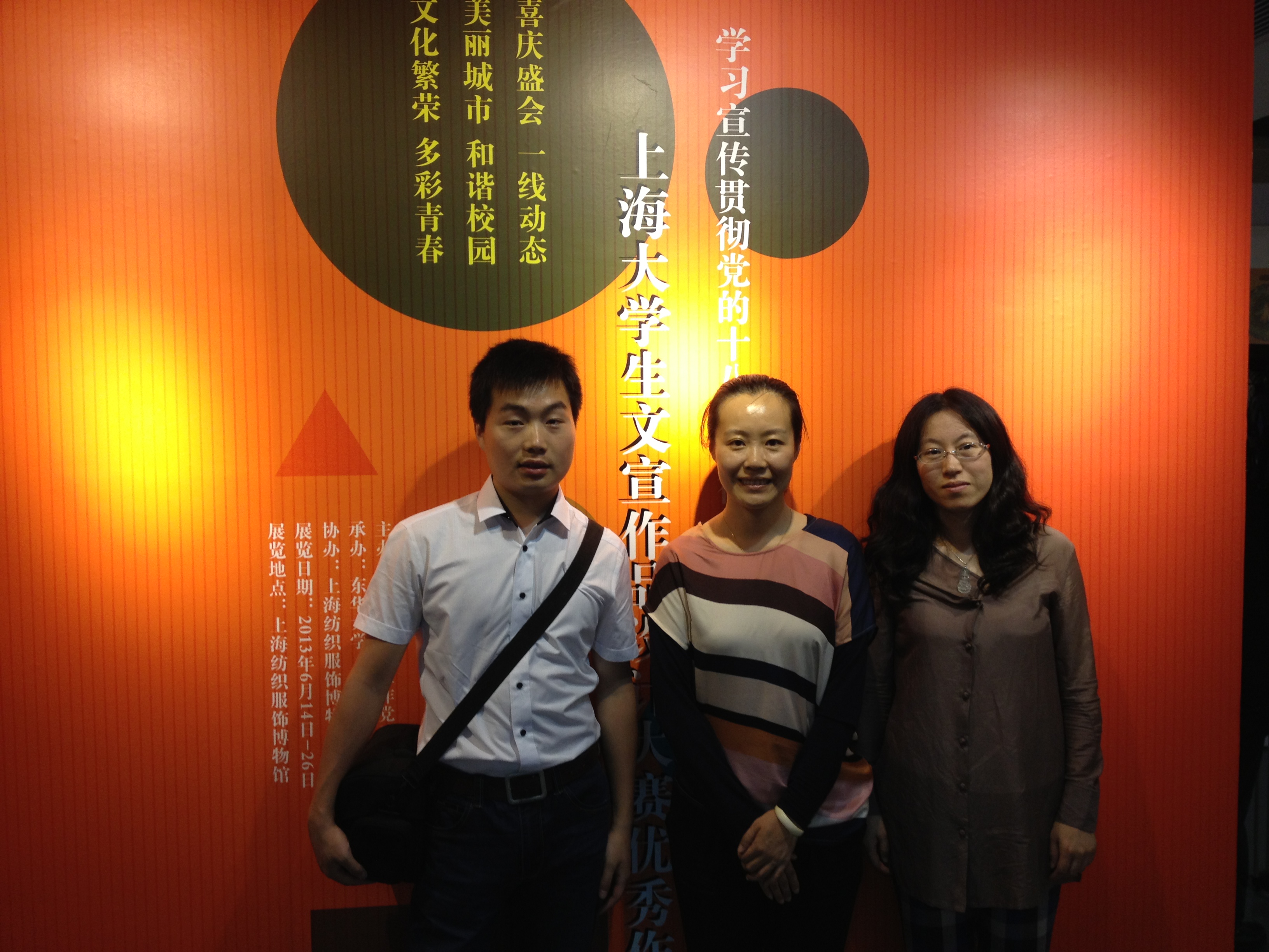 6月 14日下午,由上海市教卫党委、市教委主办,东华大学承办的“上海大学生学习宣传贯彻党的十八大精神文宣作品设计大赛”优秀作品展在上海纺织服饰博物馆拉开帷幕,这是全市大学生优秀设计作品首次集中在博物馆展出。上海海事大学徐悲鸿艺术学院10级学生姚昌的设计作品《务实缔造和谐》荣获二等奖,王嘉熙同学荣获三等奖,萧昌轶、陈浩同学荣获优秀奖。