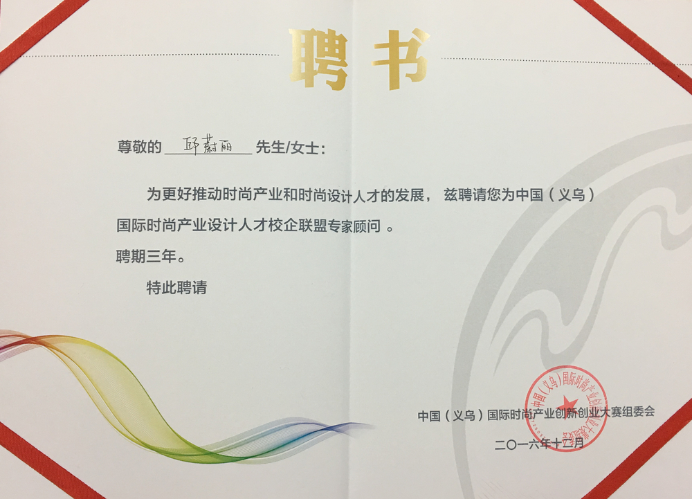徐悲鸿艺术学院邱蔚丽教授被聘为中国(义乌)国际时尚产业设计人才校企联盟专家顾问