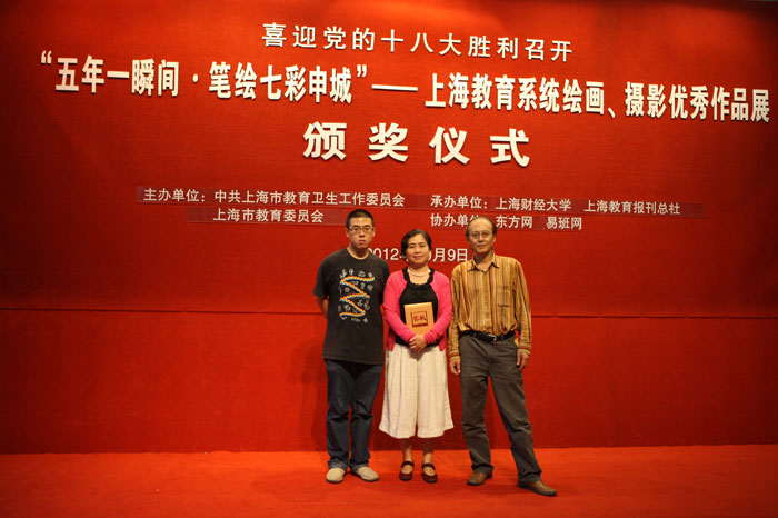 10月9日下午,“五年一瞬间•笔绘七彩申城”上海教育系统绘画、摄影大赛颁奖仪式在上海图书馆举行。上海海事大学徐悲鸿艺术学院吴桂香教授和丁芊老师的油画作品《青春岁月》荣获一等奖,何平教授的国画作品《 金色季节》、吕宗奇老师的电脑画《上海想象》和《旅途》以及宣传部韩宝威老师的摄影作品《精彩世博》均获优秀奖。