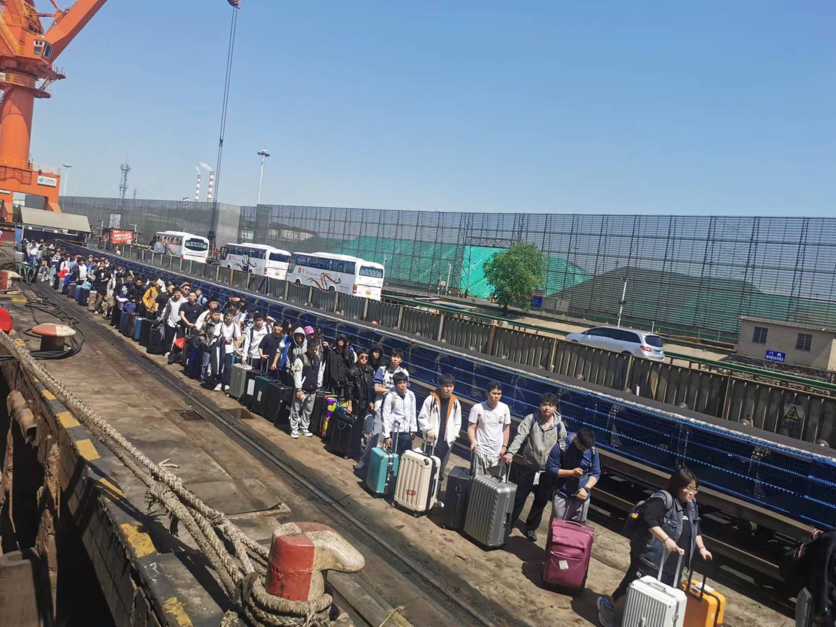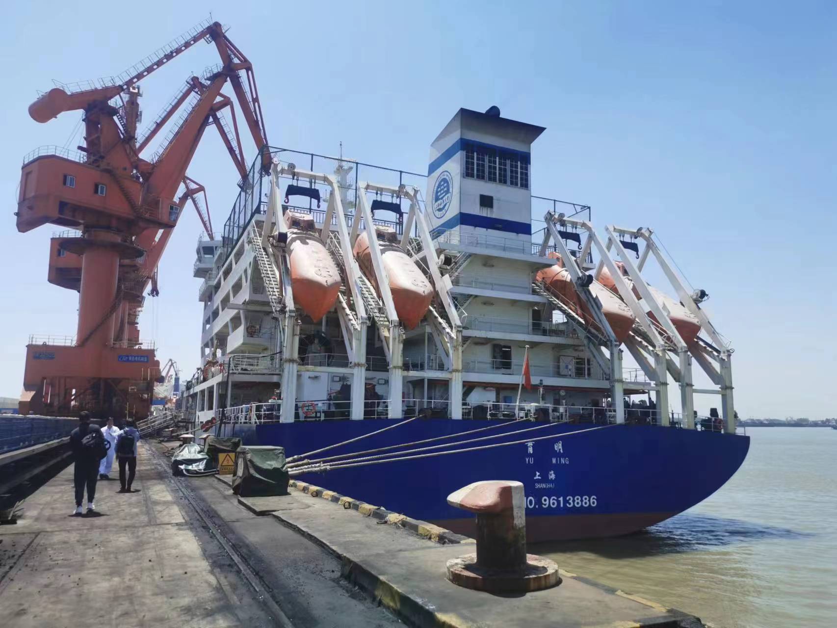 “育明”轮船长与政委高度重视学生实习工作,抽调船上精干力量全力协助学生登船及物资搬运等工作。