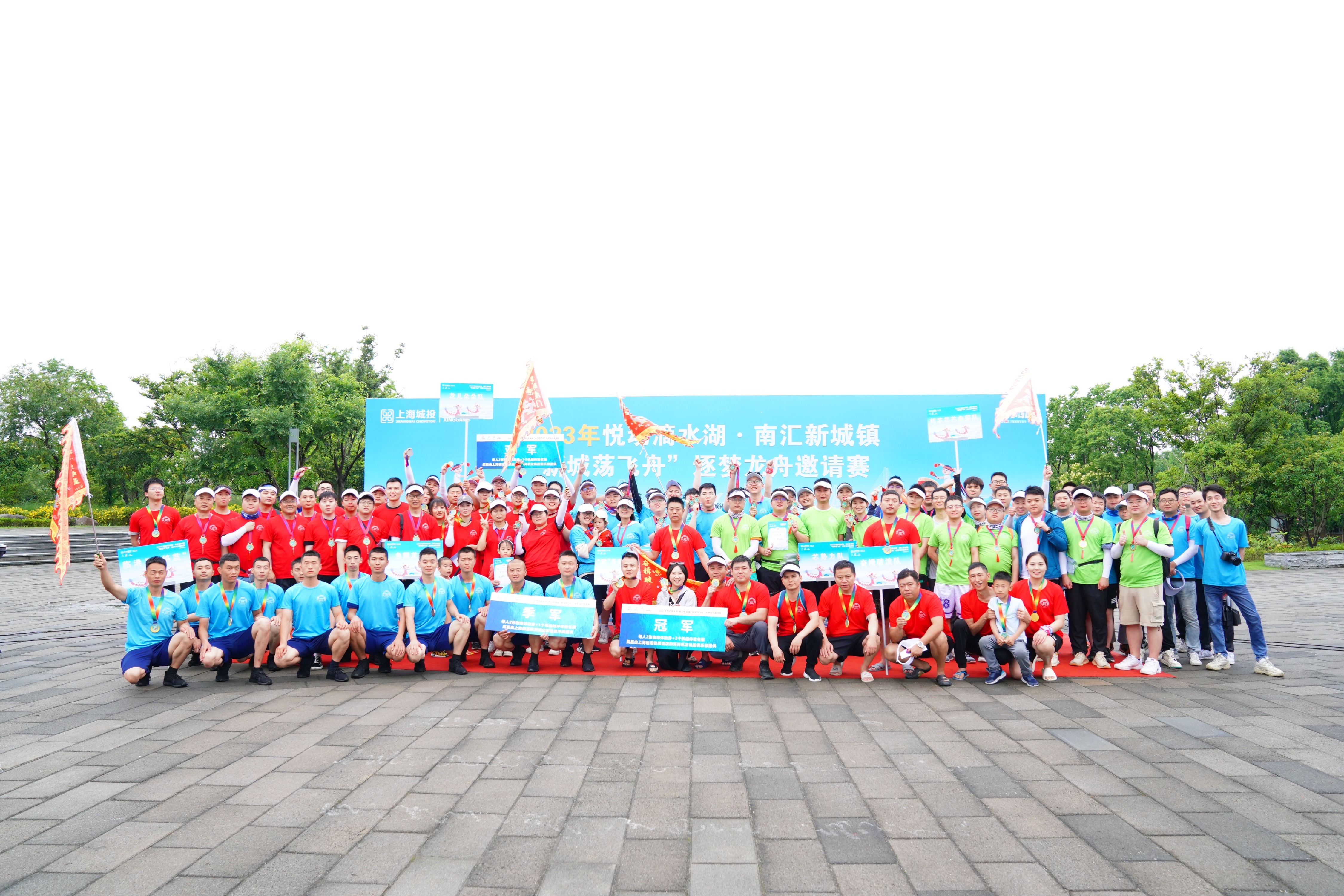 6月17日,2023年悦动滴水湖·南汇新城镇“新城荡飞舟”逐梦龙舟邀请赛在春涟河举行。临港新片区范围内的政府机关、企业、社区、学校等20支参赛队展开了男女混合龙舟300米直道竞速赛。