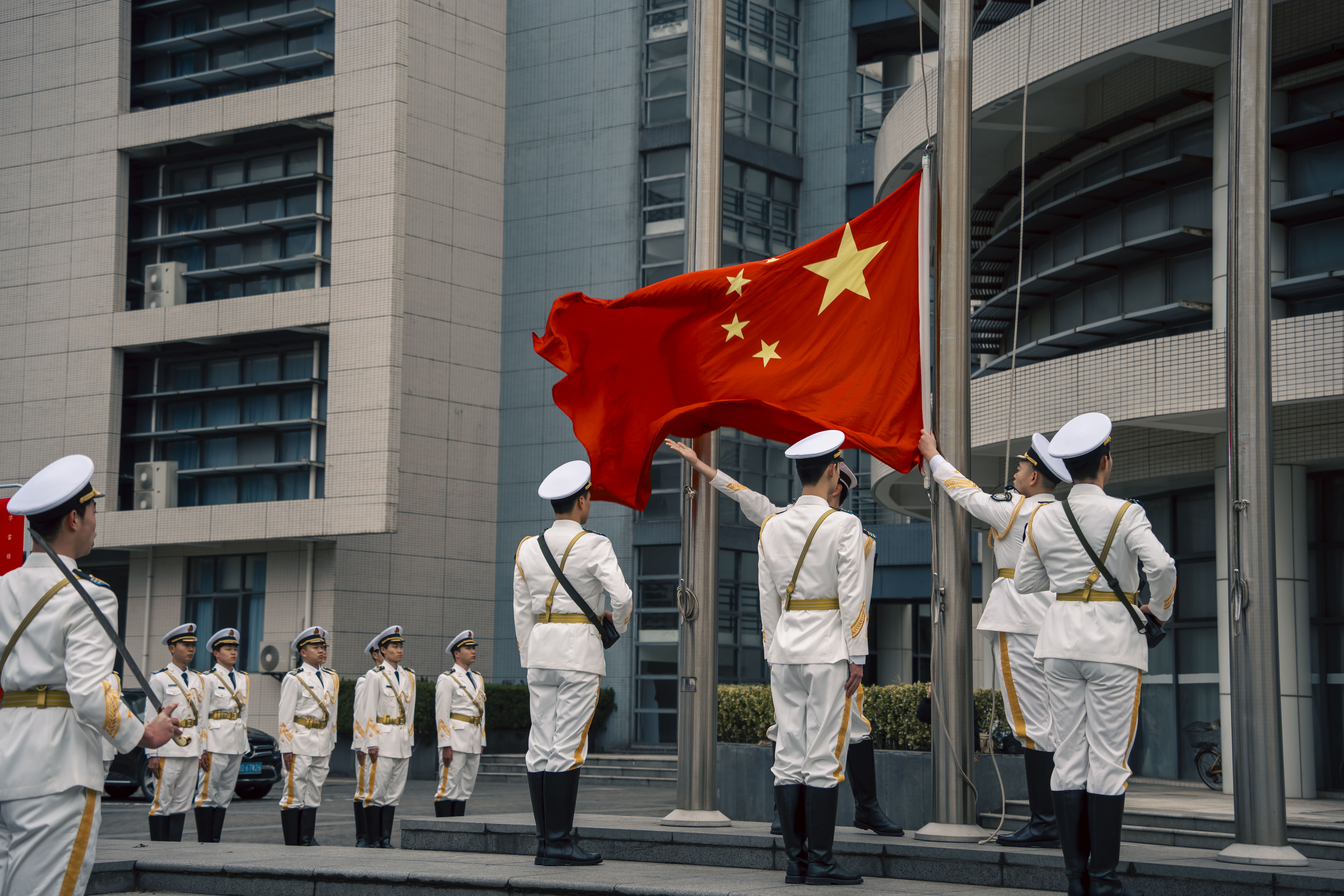 上午7:30航海广场,仪仗队员迈着整齐一致的步伐,将国旗护送至升旗台,解旗、挂旗、升旗。伴随着嘹亮的国歌声,鲜艳的五星红旗迎着朝阳冉冉升起,全体师生肃穆而立,整齐列队,行注目礼,齐声高唱国歌,向国旗致以最崇高的敬意。