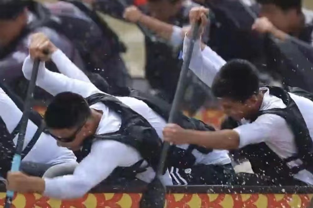 上午9点小组赛打响,经过第一轮的角逐,学校龙舟队获得了小组第一的好成绩,从各个队伍中脱颖而出。本次比赛的项目是300米直道赛,相对于传统的200米和500米,300米直道赛更加考验参赛队员的意志力和综合有氧能力。队员们丝毫不敢懈怠,全力为下午的决赛做着充分准备。