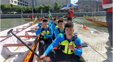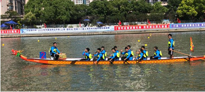 6月5日,学校龙舟队参加在苏州河中远两湾城举行的第十八届苏州河城市龙舟邀请赛,并以预赛小组第一、决赛第一的好成绩,获得混合C(高校)组冠军。