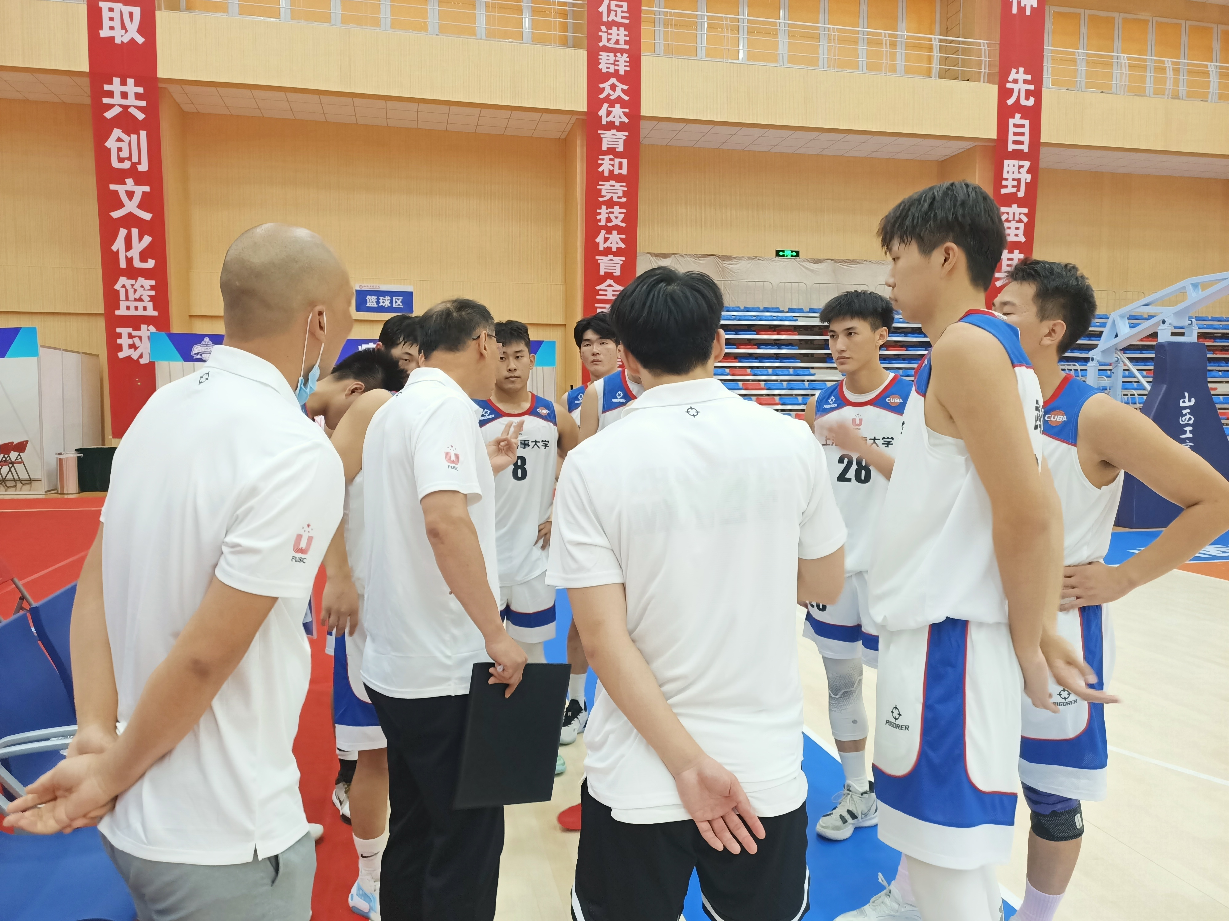 本次参赛学校篮球队一共有12名队员组成,分别是来自经济管理学院的杨罡、买提瓦尔·买买提和谢雨航;商船学院的朱圣航、纪家辉、白云帆、刘辰骁;物流工程学院的武博涵、李征宇、黄鼎明和李煜诚;信息工程学院的黄越同学。在小组赛对阵中国国防科技大学时,队员们在开局不利的情况下,充分发挥顽强拼搏、敢打敢冲的精神,在第四节成功逆转对手以86:78取得开门红。在面对种子队安徽理工大学的比赛中,队员们更是气势如虹,一鼓作气以91:74战胜对手,以小组第一名昂首出线。