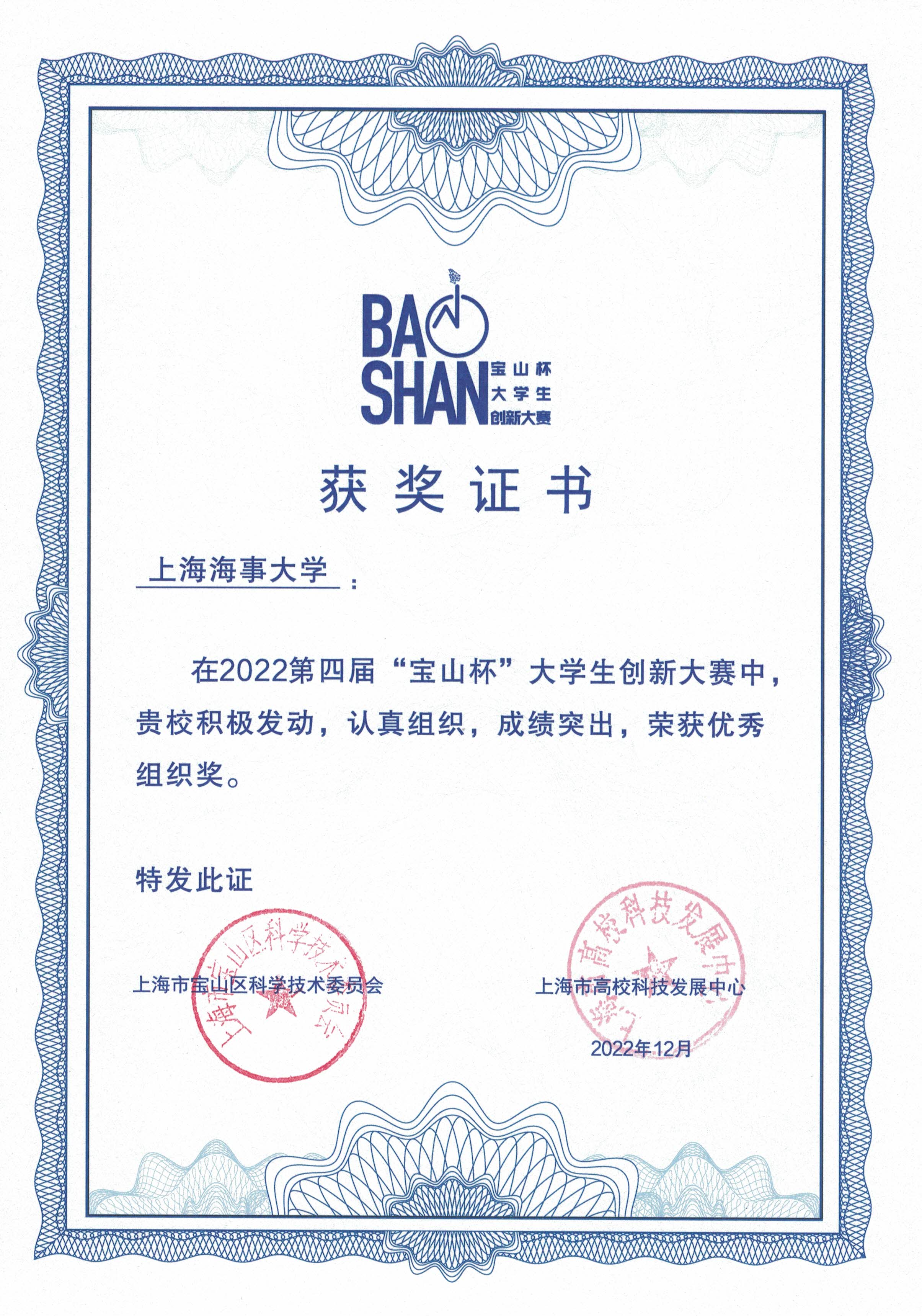 学校荣获第四届“宝山杯”大学生创新大赛优秀组织奖和团队项目三等奖