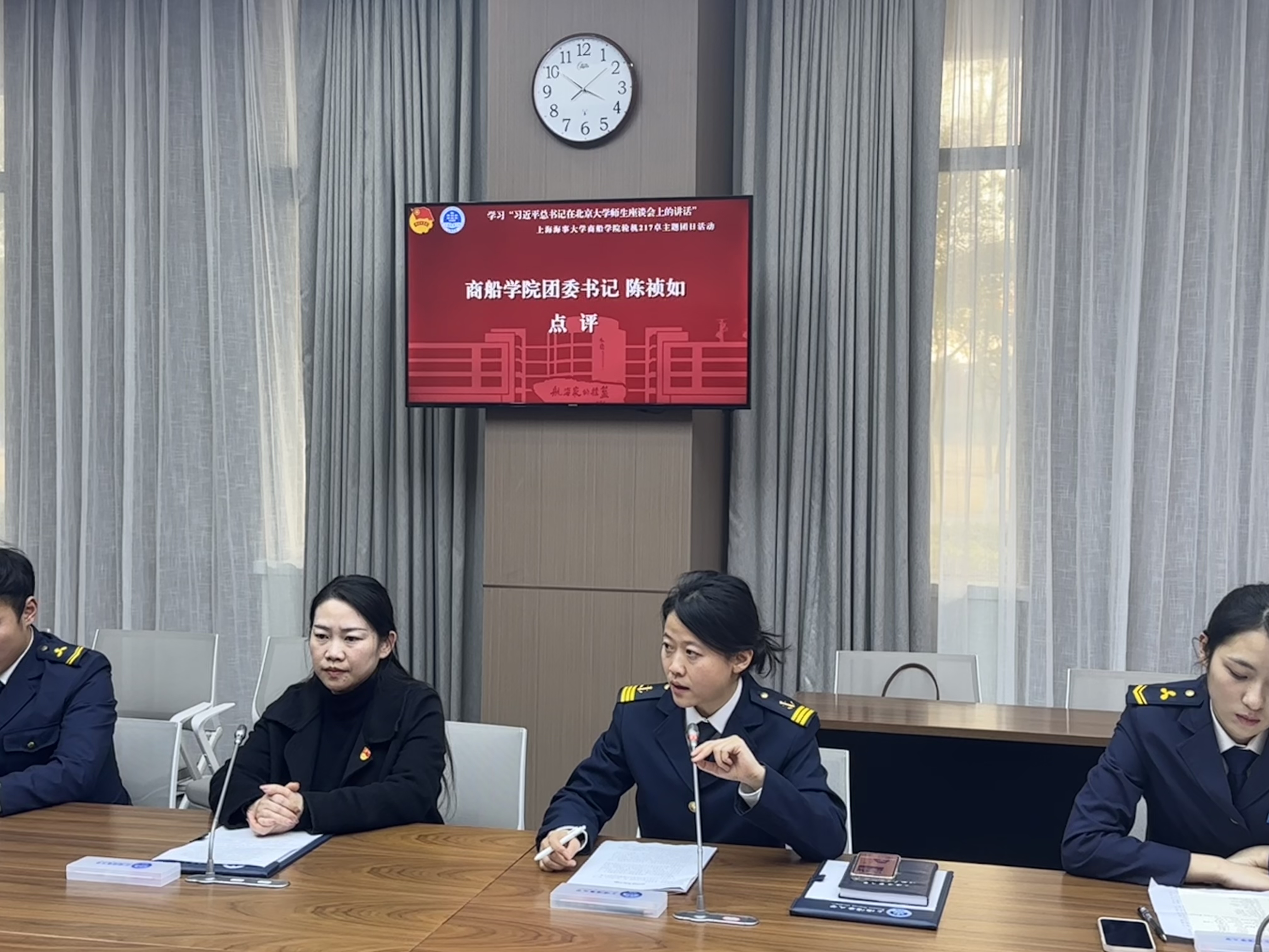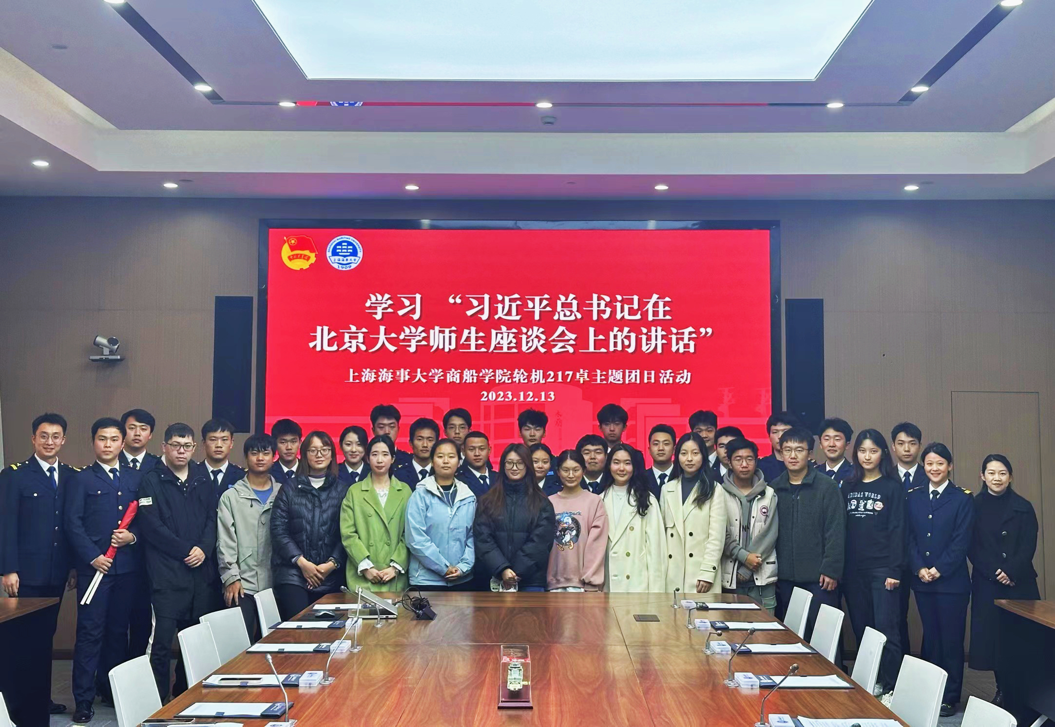 为深化团员和青年主题教育学习效果,激发青年学生挺膺担当,12月13日,学校商船学院轮机217班团支部开展学习“习近平总书记在北京大学师生座谈会上的讲话”主题团日活动,团市委安排录制并邀请上海海洋大学、上海电力大学、上海电机学院、上海建桥学院等高校团支部师生代表来校观摩。