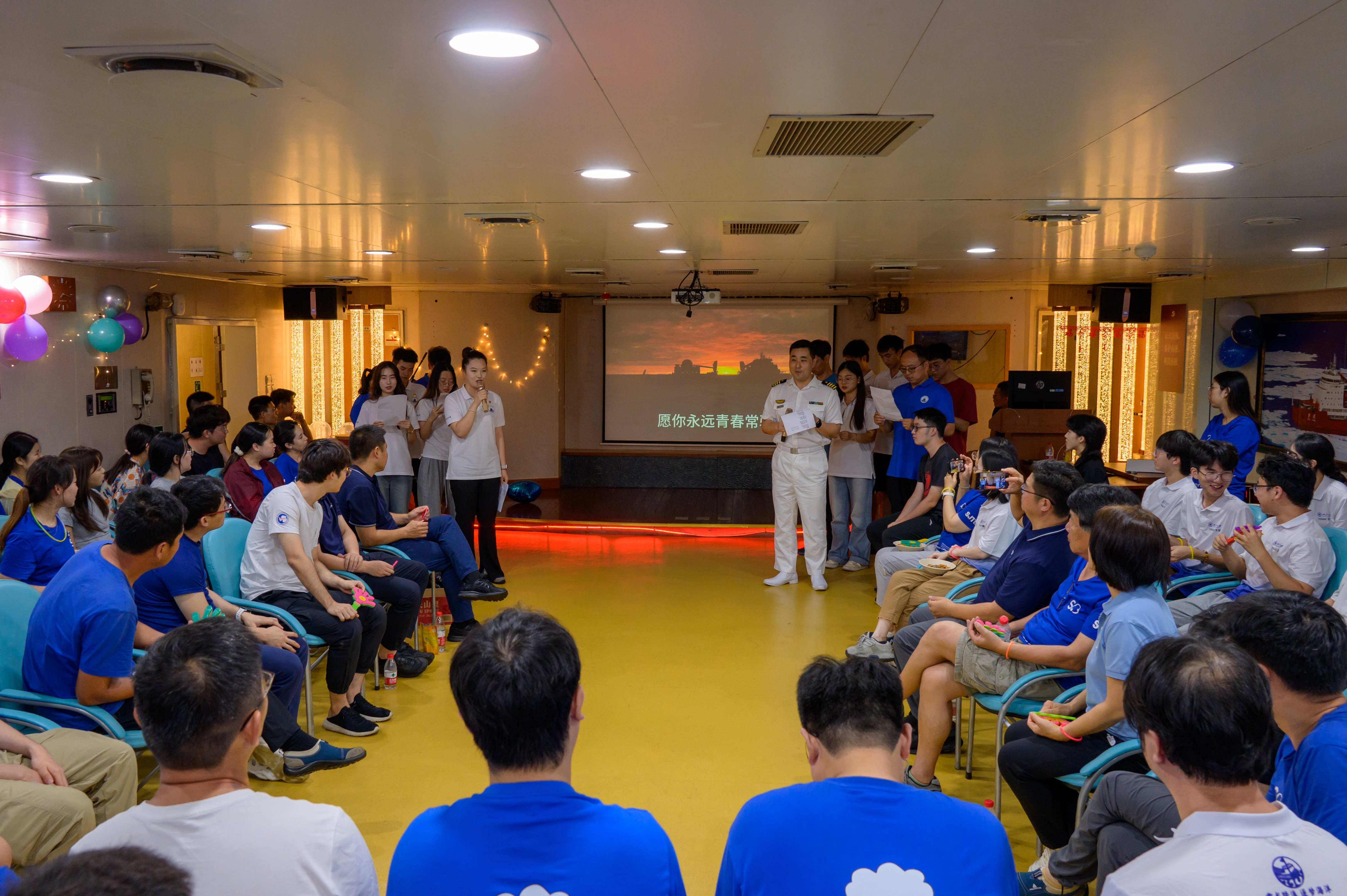 学校吴华锋与李秀芳分别在“极地大讲堂”和“启航第一课”上为全船学生带来“高纬度地区智能航行通信组网及安全保障”与“旅大接收过程与中国海权维护”课程的讲授;“雪龙”号政委程皝受邀为师生们带来“雪龙号勇闯极地”主题团课;郑瑞环讲授“航路、国家与世界”主题课程;黄大为组织“向海逐梦,为海洋强国注入青春力量”主题学习。青年学子们深刻认识到海洋科学研究对于国家发展的重要意义和自身肩负的历史使命,坚定了为海洋事业贡献力量的决心和信念。