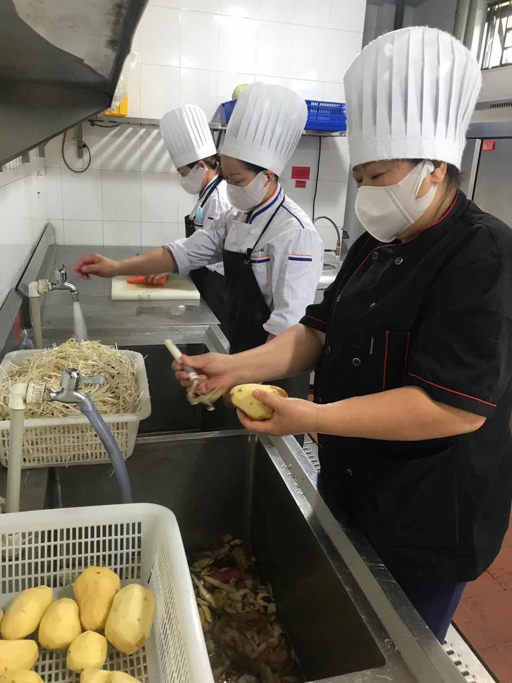 为做好暑期校内人员的餐饮保障,提供多风味的就餐选择,后勤中心开放了海馨楼第一餐厅、风味餐厅两个食堂保障师生就餐。凌晨4点多,食堂职工已经准点到达后厨,开始留校师生们一日三餐的准备工作。后勤餐饮管理办公室加强疫情期间的食堂安全管理,从采购源头控制、员工健康状况、加工环节管理、供餐食品留样、餐厅就餐管控等方面毫不放松,确保师生吃的安全放心。食堂实时掌握食堂职工健康、出行及返沪情况,督促值班食堂员工做好自我行为管理,增强防控意识,采取各类措施保障师生餐饮安全。测量体温、日常消毒的步骤一样不少,就餐区设置单向出入口,加强餐厅餐桌椅、门把手、地面喷洒消毒,降低疾病传染风险,不断调整品种和花样,按时提供着品种多样、美味可口的饭菜。针对今年汛情造成部分洪涝灾害的实际情况,后勤总支主动关心员工,及时了解食堂外地员工家乡受灾情况,通过后勤工会对受灾员工进行帮助,让他们能够安心服务师生。