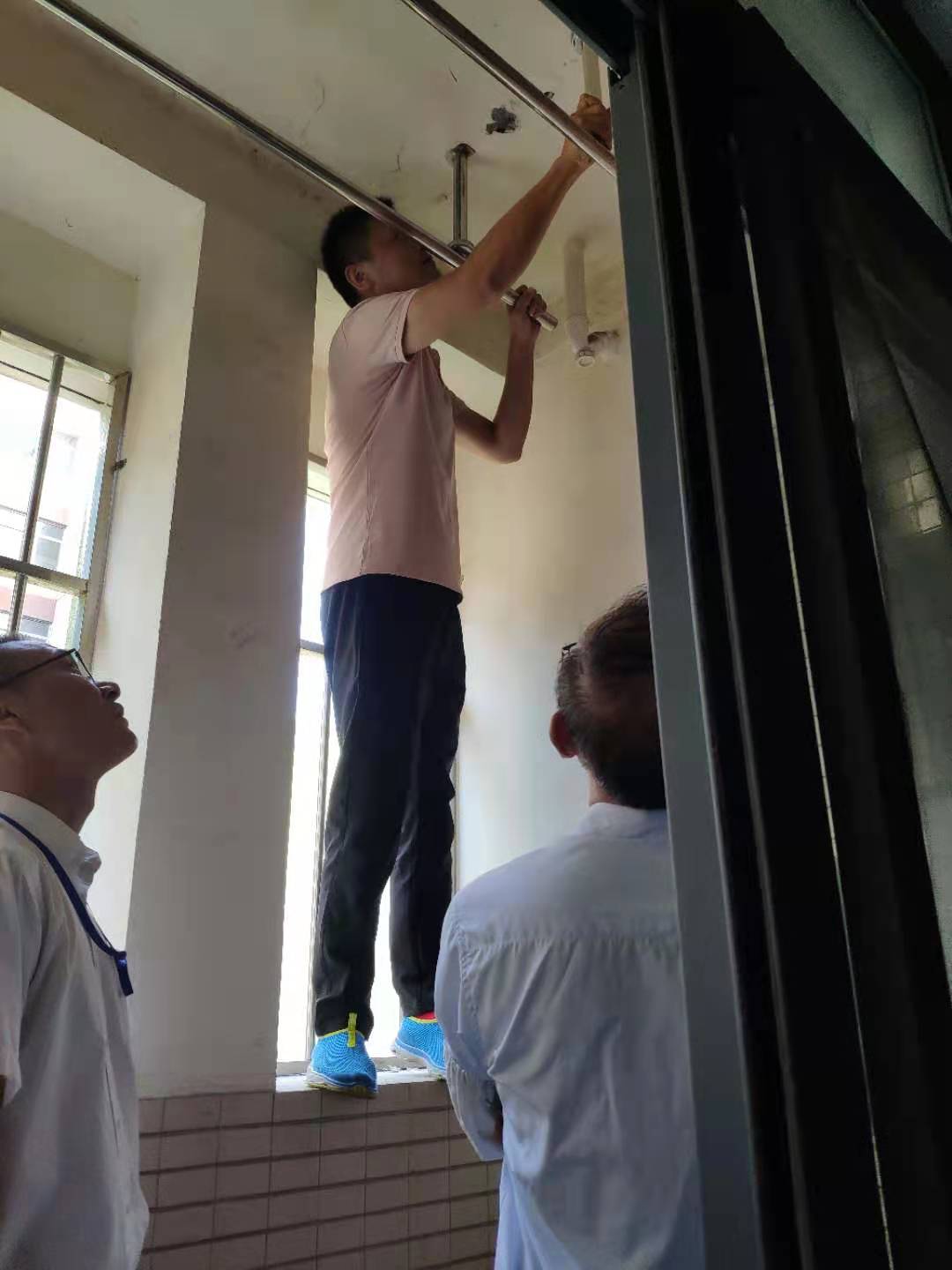 维修管理办公室仅有的陈伯乐、刘鹏两名同志分别是80后、90后的年轻同志,俩人老家都在外地,暑期是难得的与家人团聚的时期,他们却不约而同选择留守校园,坚守工地。他们开足马力,全力以赴,对待工作一丝不苟,严格把控每个关键环节,确保工程质量安全。 为保证1-7#学生公寓更换不锈钢水槽的质量,刘鹏老师拿着游标卡尺反复核对不锈钢板的厚度;为确保更换不锈钢晾衣架的牢固度,陈伯乐老师带着施工单位反复做样板试验……,就是这样的点滴瞬间,切实反映了他们认真的工作态度。不少施工单位一开始都无法接受这样严格的管理,怨言颇多,但通过维修管理办公室老师们的以身作则,循循善诱,他们也都渐渐折服,自觉提高了工作标准。维修管理办公室人员放弃休息时间,加班加点,全身心投入到各项项目管理工作,确保维修项目施工进度有序可控。