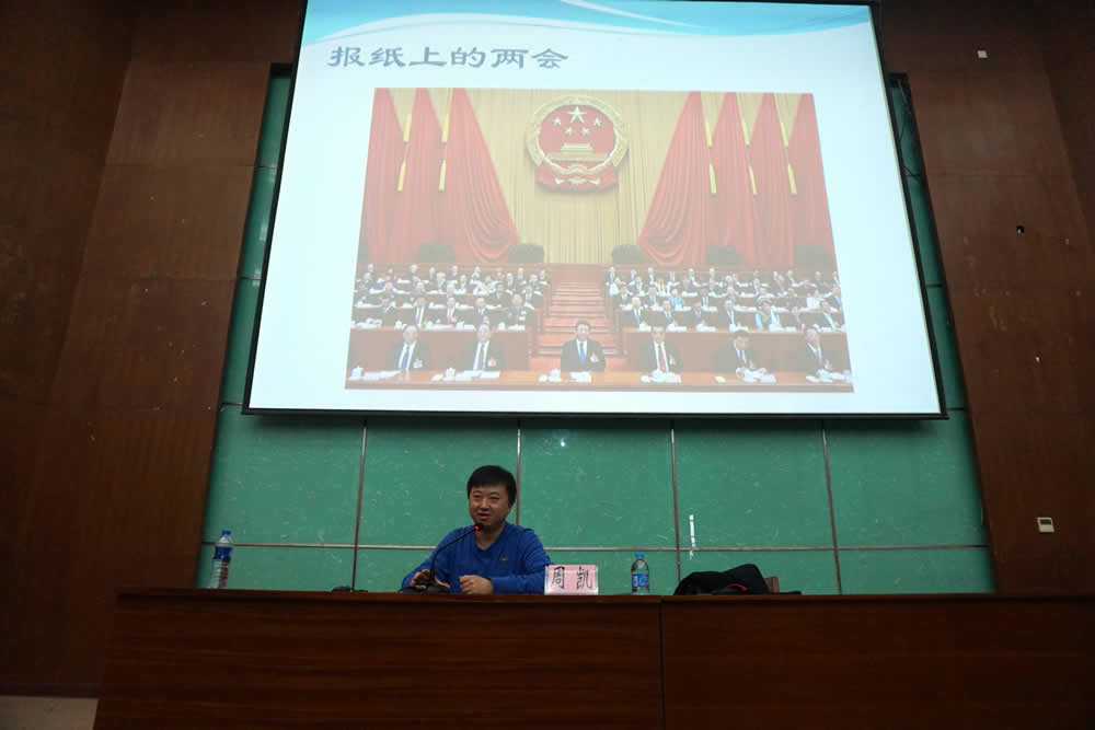 周凯老师通过图片,以其独特的视角,向大家传递两会精神。他从中国的基本国情出发,介绍了全国各级人民代表大会和人民政治协商会议的内容、目的、意义,着重介绍了2015年全国两会期间李克强总理提出的关于简化行政审批、户口改革、金融改革、推进利率市场化改革等政府工作报告内容。