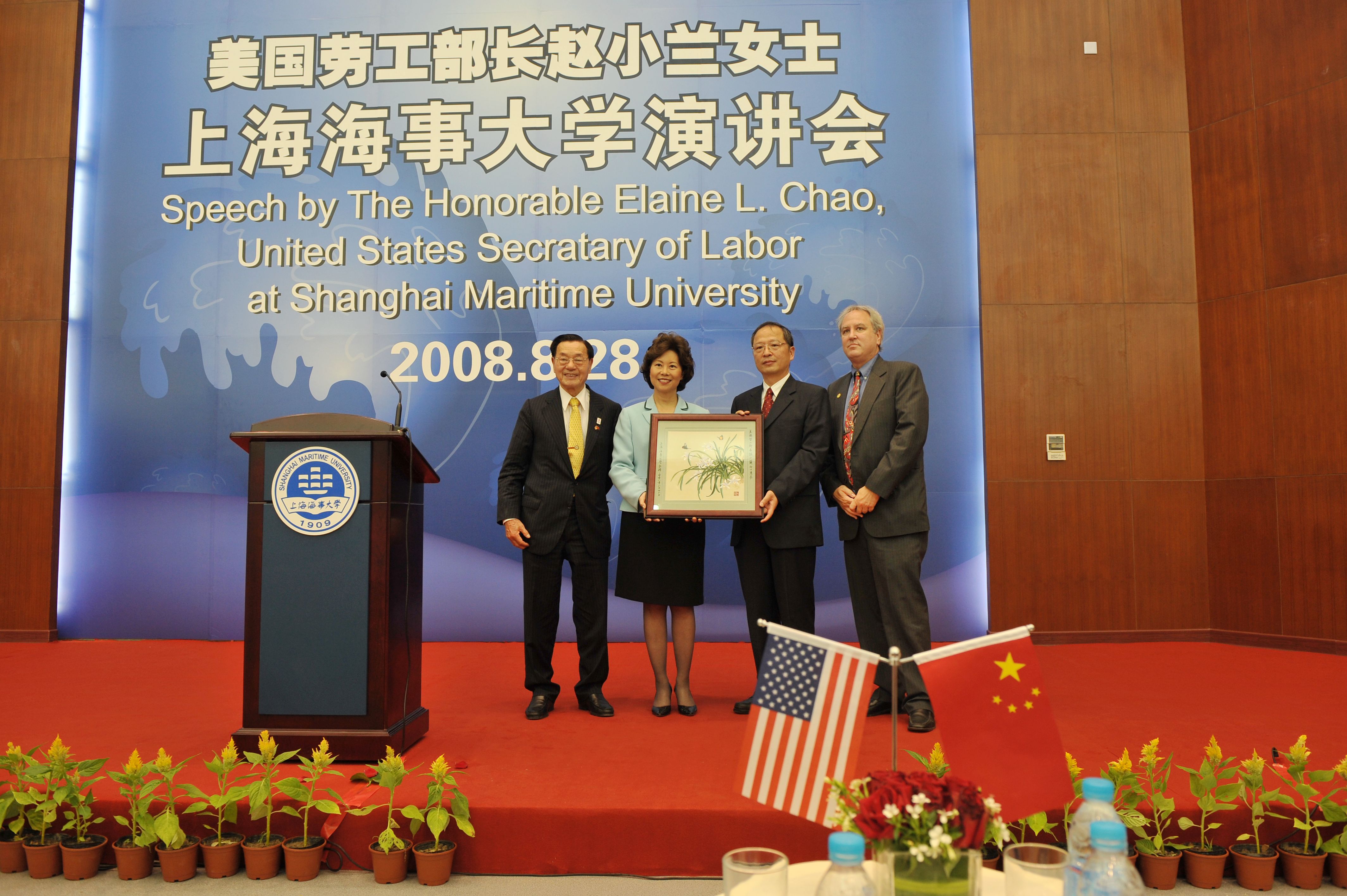 10月9日下午,我校1946级知名校友、美籍华人、美国福茂集团董事长赵锡成博士携长女美国前劳工部长赵小兰女士一同现身上海海事大学。今年,是上海木兰教育基金成立32周年,又有34位来自上海海事大学、大连海事大学等航海院校的师生,分别获得木兰奖学金、木兰助学金和木兰奖教金。32年来,木兰教育基金先后资助近2600名师生,为中国航运事业的发展,造就出了一批批优秀的高级航运人才。