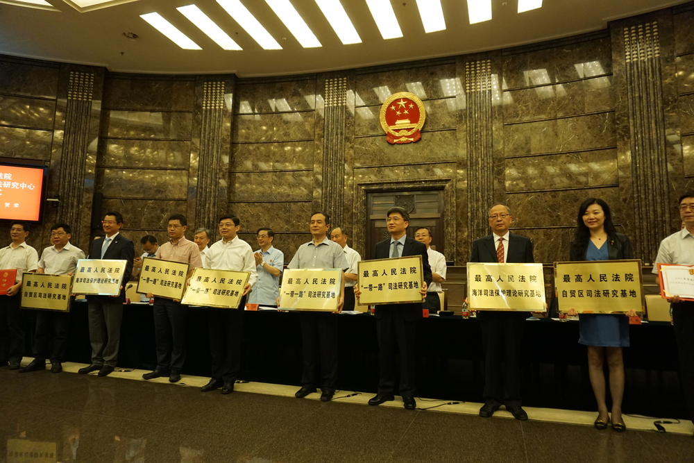 7月8日上午,最高人民法院在北京举行最高人民法院“一带一路”司法研究中心成立仪式。最高人民法院院长周强、中国法学会会长王乐泉出席成立仪式并分别致辞。该研究中心下辖最高人民法院海洋司法保护理论研究基地、自贸区司法研究基地和“一带一路”司法研究基地。上述研究基地均设于在相关领域的研究水平处于国内领先的高校和科研机构。