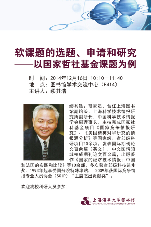 专家讲座公告:软课题的选题、申请和研究——以国家哲社基金课题为例