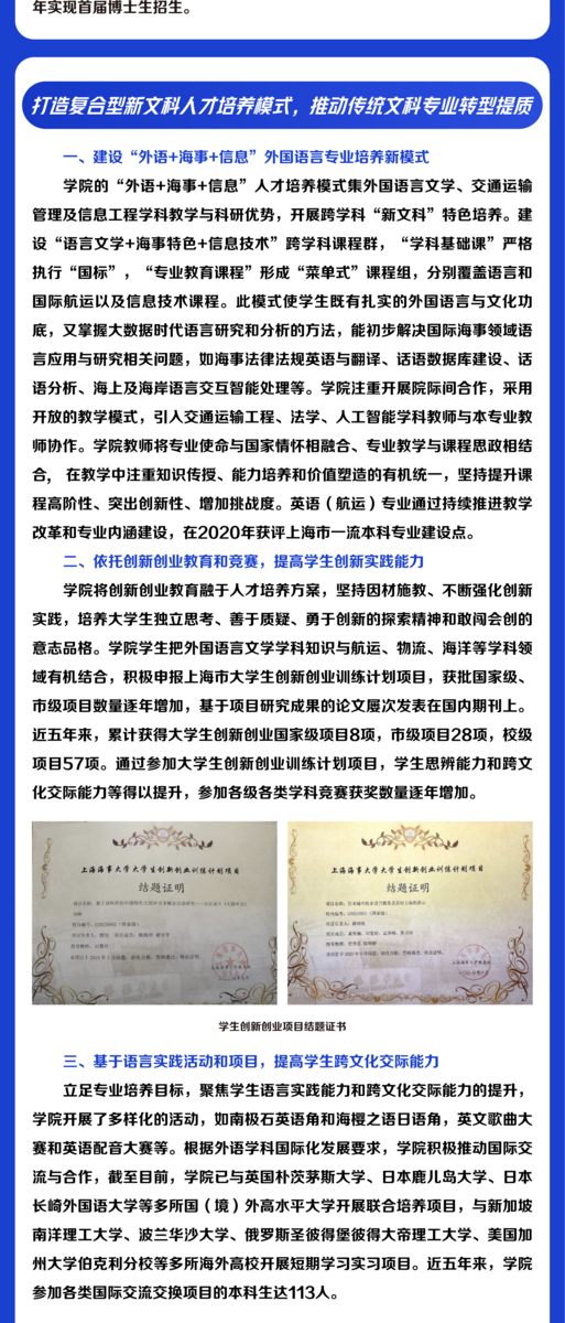 本科教育教学巡览 | 外国语学院:融复合式课程、科创实践和国际化视野于一体,着力培养具有“国际海事”特色的复合型应用型外语人才