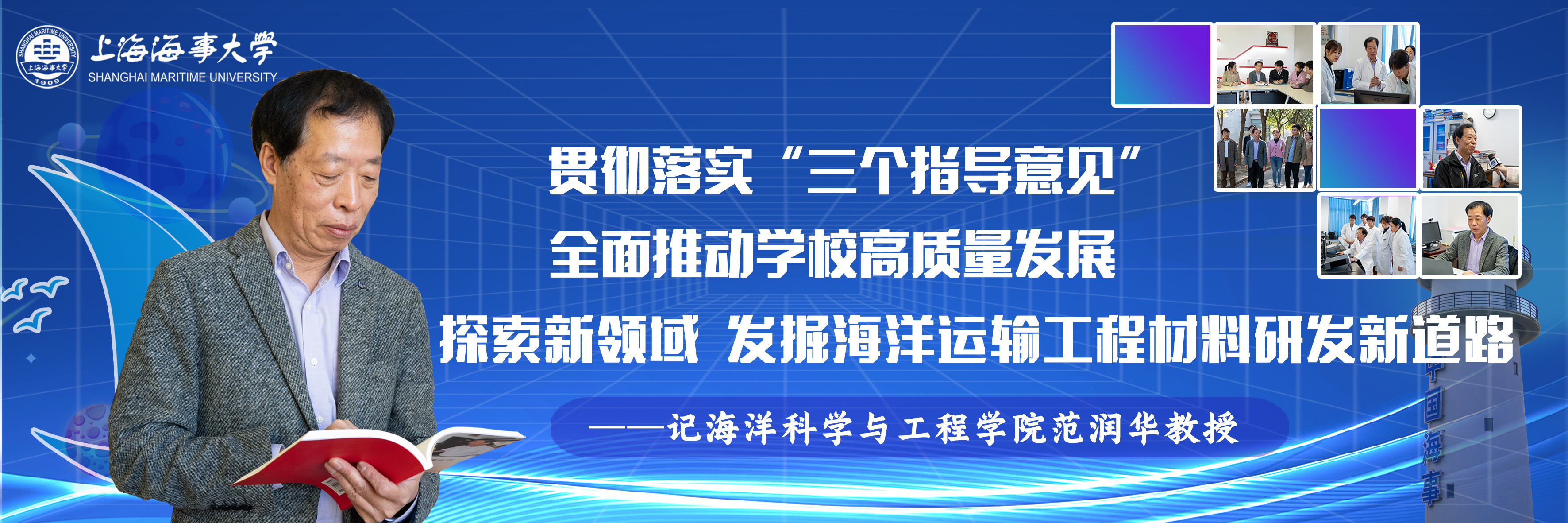 为促进广大教职工深入理解并贯彻落实“三个指导意见”,统筹推进学校专业建设、学科建设和科研发展,增强为学校高质量发展贡献力量的使命感和紧迫感,党委宣传部通过深入走访取得突出科研成果的一线教师和科研团队,报道他们将学校特色与个人、团队成长相结合,深入思考、积极转变、主动融入学校发展的先进事迹。希望通过身边的人和身边的故事,激发广大教职工牢牢把握新时代新征程学校事业发展使命任务,坚定不移的走具有海事特色的发展道路,全面提升学校科技创新能力,更好地推动学校各项事业的发展。
