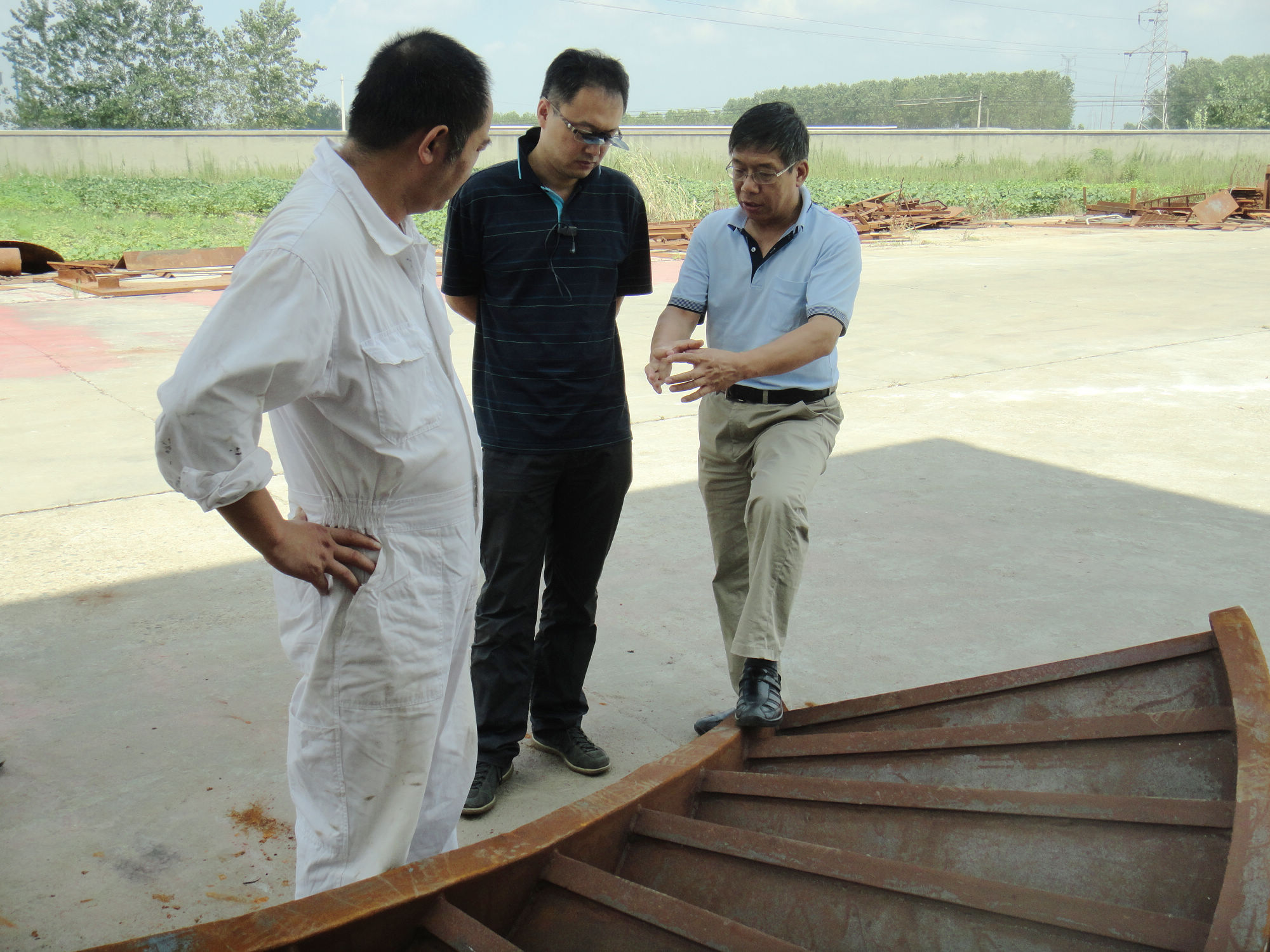 船舶设计方案出来以后,作为驻厂监造组组长,许乐平教授又带领同事来到位于江苏省扬州市江都区的中海工业江苏造船基地。在生产设计过程中,由于船厂没有类似生产设计经验,许乐平教授和监造组的同事们深入船厂设计部门,与设计师们一起共同商讨相关事宜,最终交出了一份高质量的设计图纸。在生产过程中,为了保证质量,他们天天都在船厂盯着,一天要巡视许多次,每一个环节都要监督到位。监造人员少,监造任务量大,其监造难度可想而知。仅船上的管子就有2万多个焊接接头,他们都要一一检验把关。