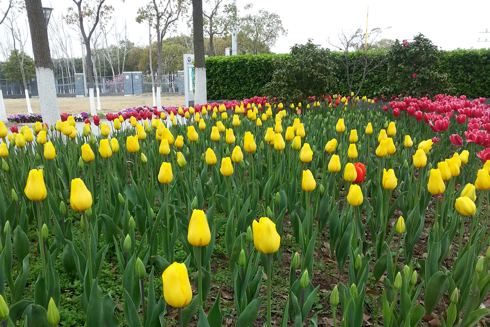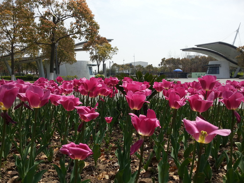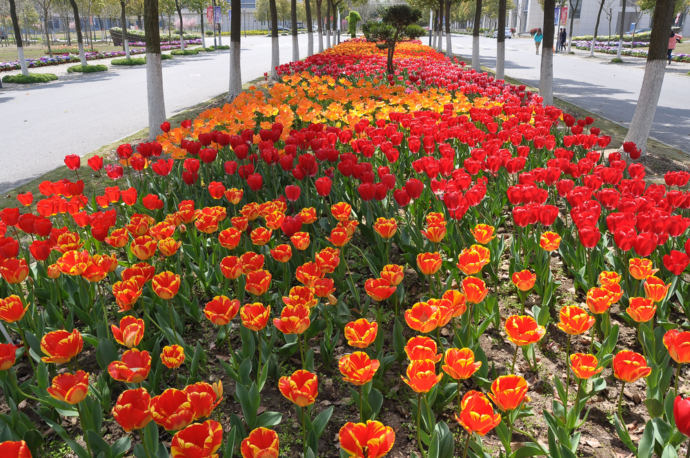 上海海事大学后勤服务中心有关负责人介绍,目前学校水体水景面积8万平方米,绿化面积73万平方米,共栽种花木137种,蜿蜒起伏的绿化带上四季有花,郁郁葱葱。目前正在盛开的郁金香有1万多株,分早、中、晚三批,观赏期会一直持续到5月初。桃花有几百株。“接下来要开的有紫荆花、木槿、荷花、睡莲……一年365天从不缺风景。”