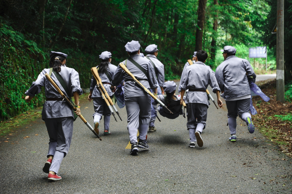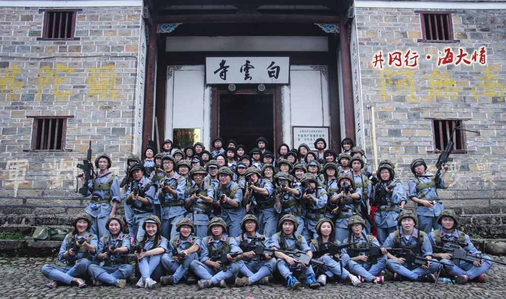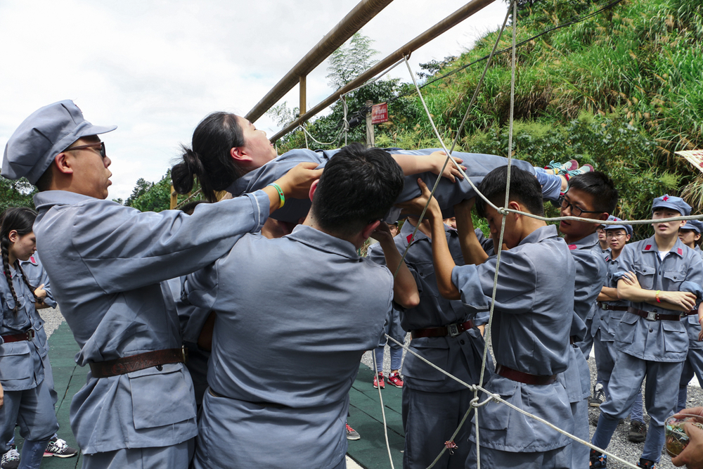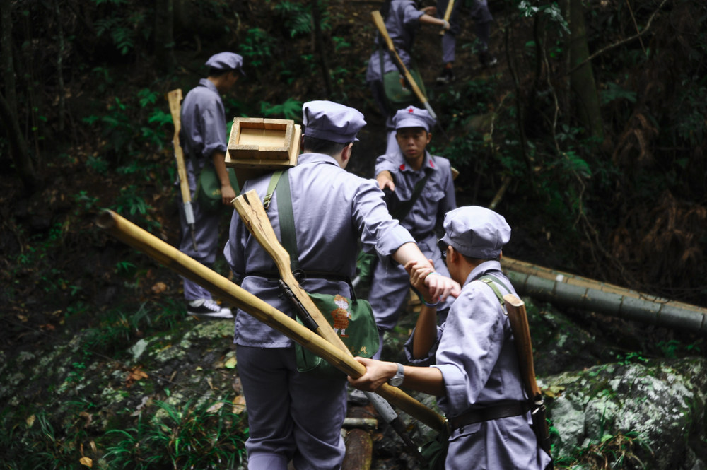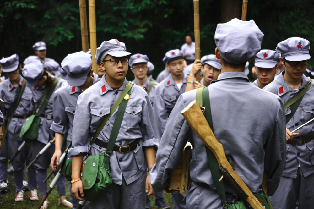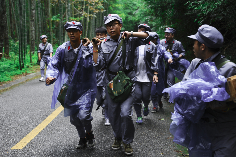9月3日,由上海海事大学学生骨干组成的第三期井冈山团中央青少年基地培训班在井冈山进行了“红军的一天”体验活动,身体力行的感受当年红军战士不怕苦,不怕累的精神,凝聚爱国主义热情,为民族振兴贡献力量。练兵分政治学习,沙场点兵,保卫井冈三个部分。包括跨越求生墙,穿越封锁线,投掷手榴弹及模拟黄洋界保卫战的真人CS项目。从理论到实践,全方位的体验了红军当年的练兵活动和实战。感受到了战士们日常训练的辛劳,战场上的无谓和英勇。没有他们的流血牺牲,就没有我们今天的和平景象。"红军"在实力悬殊的战斗中誓死保卫红旗的精神让人动容,也让人感慨信仰的力量。