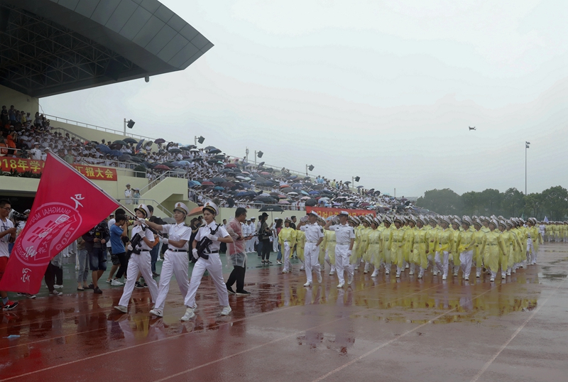 上海海事大学举行2018级学生军训汇报大会