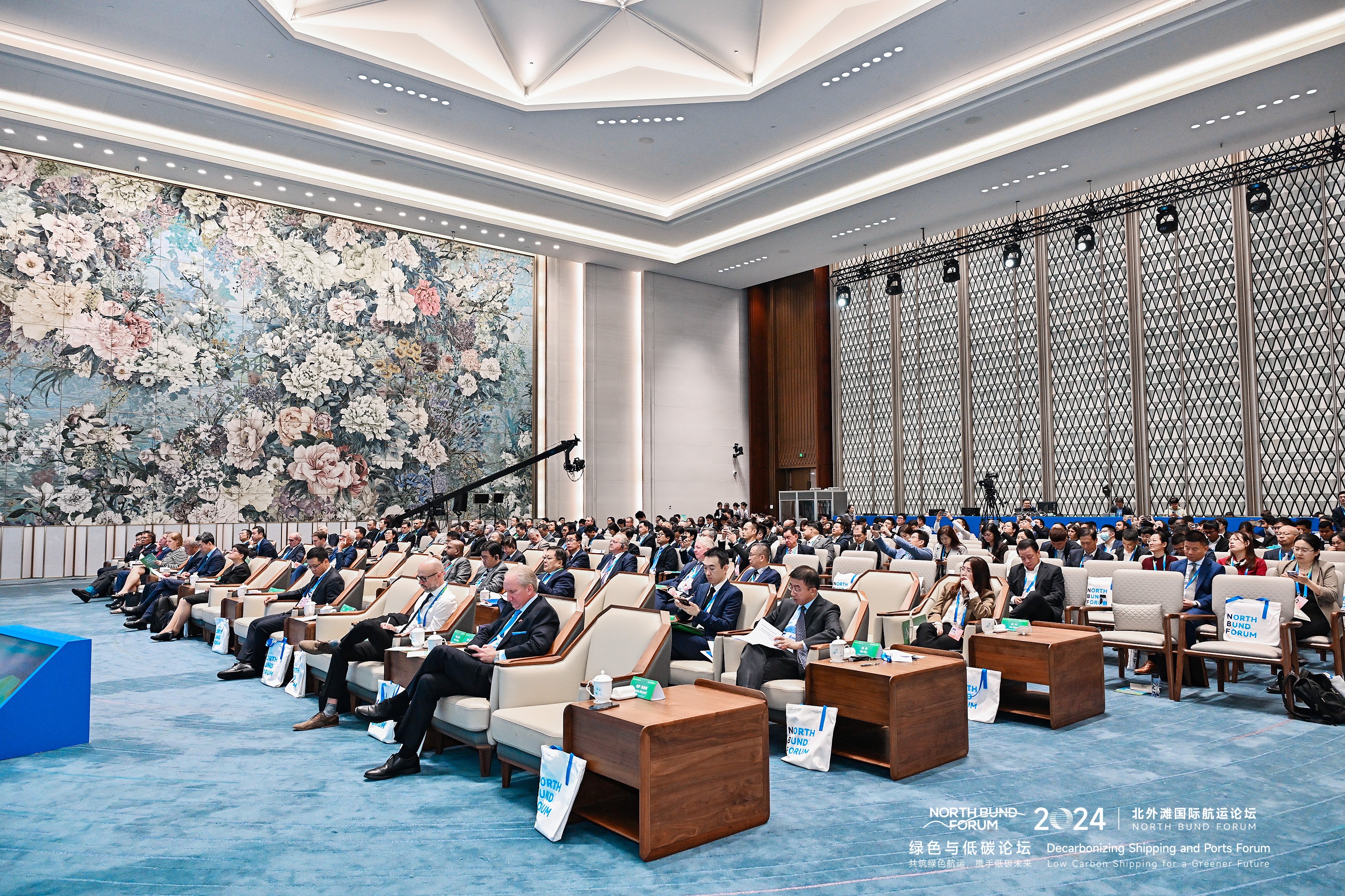 10月23日,由北外滩国际航运论坛组委会主办,上海海事大学、亚洲海事技术合作中心(MTCC)承办,国际航运公会(ICS)协办的2024北外滩国际航运论坛“绿色与低碳”论坛在世界会客厅举行。论坛以“共筑绿色航运,携手低碳未来”为主题,邀请相关政府部门、国际组织、航运企业、行业专家等发言致辞,校党委书记宋宝儒、校长初北平出席论坛,副校长施欣主持论坛。来自英国、美国、俄罗斯、丹麦、法国、波兰、意大利、新加坡、孟加拉国、比利时、加纳、日本、肯尼亚、马来西亚等30多个国家和地区的260名代表参会,其中外宾100余人。