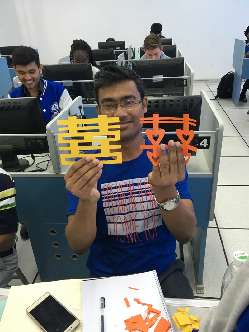 剪一纸窗花、打一套太极拳、作一幅中国画、和同学一起泛舟智慧湖上,于品茗习字间,体验浓郁的“东方韵味”,更在吟诗作画的实践中,领悟中国文化的博大精深、奇妙灵动……当这些充满中国元素的传统文化艺术体验,被带到我校外国留学生课堂上时,受到了来自不同国家留学生们的欢迎和喜爱。近几年来,为积极推动中华文化在世界的传播与推广,丰富学校留学生们的学习生活,上海海事大学为留学生精心设计了中国传统书画艺术、龙舟课、太极课、插花剪纸等中国传统文化系列课程,让留学生们充分领略中化传统文化的独特魅力。