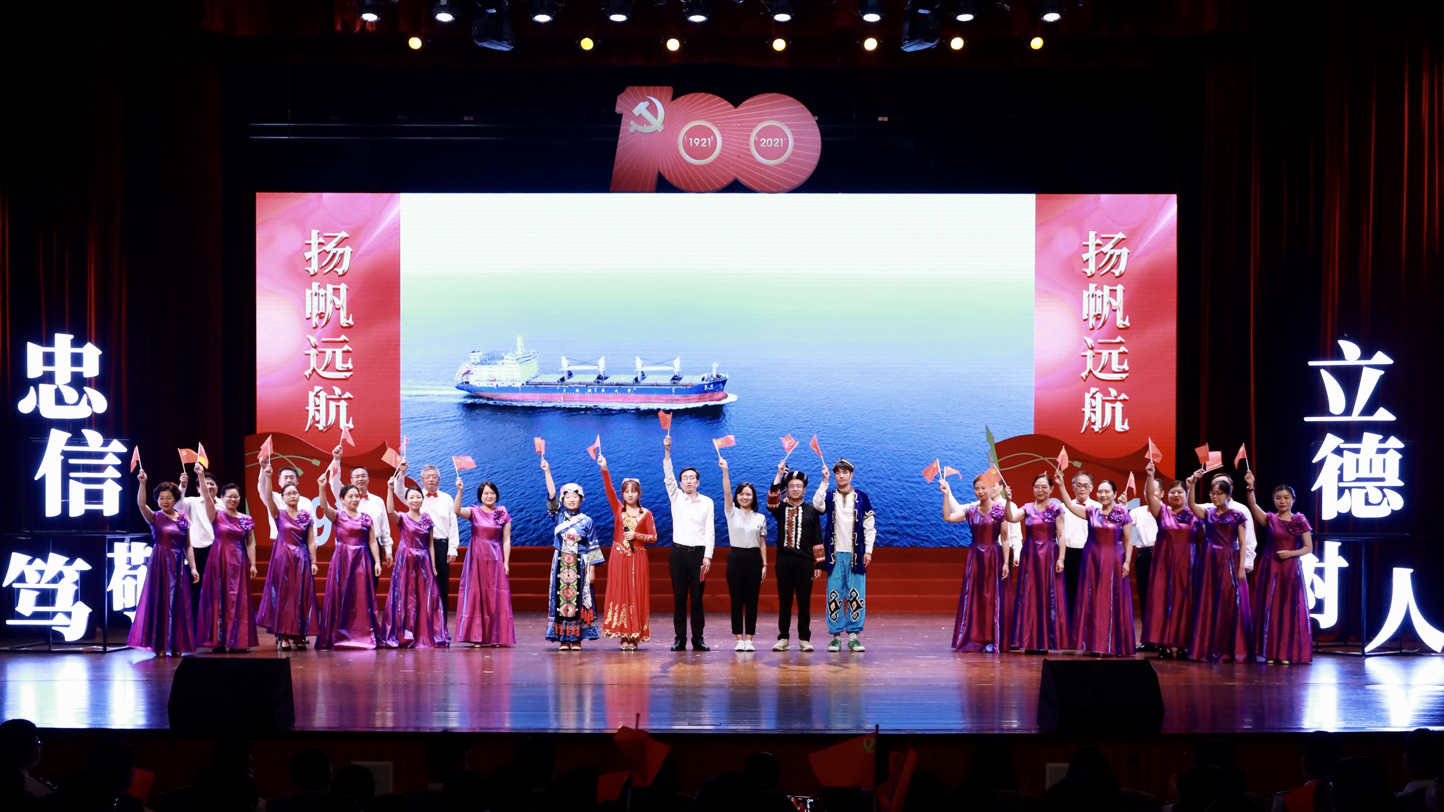 在喜迎中国共产党成立100周年之际,6月30日下午,上海海事大学“学百年党史,启航新征程”示范党课在校大礼堂开讲。校领导宋宝儒、陆靖、贺莉、严大龙、李志鹏、施欣、严伟、栗建华出席,全体中层干部、党支部书记、“光荣在党50年”纪念章获得者代表、学校“两优一先”表彰获得者、民主党派代表、师生代表近1000人共同聆听党课。