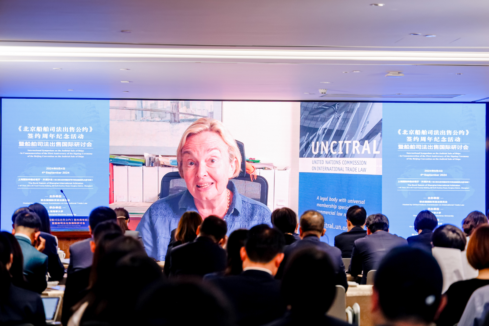 2022年12月7日联合国第七十七届大会正式通过《北京船舶司法出售公约》(简称《北京公约》),2023年9月5日在北京举行签约仪式,这是海事海商领域首个以中国内地城市命名的联合国公约,彰显了中国在国际海事海商领域的引领作用。为扩大《北京公约》的影响力,9月4日,在公约签署一周年之际,《北京船舶司法出售公约》签约周年纪念活动暨船舶司法出售国际研讨会在上海举办,研讨会由联合国国际贸易法委员会主办,上海海事大学承办,上海仲裁委员会协办。