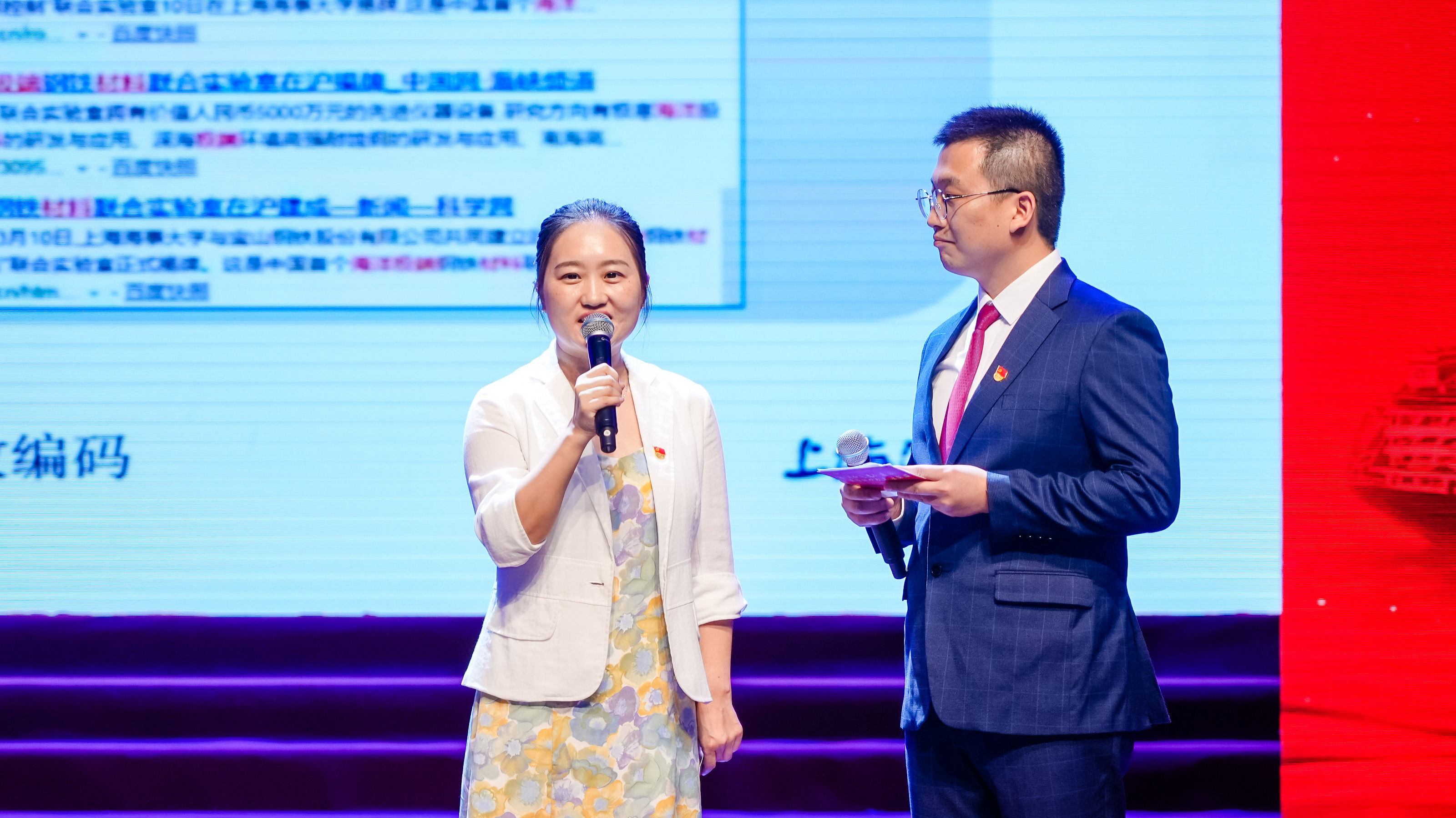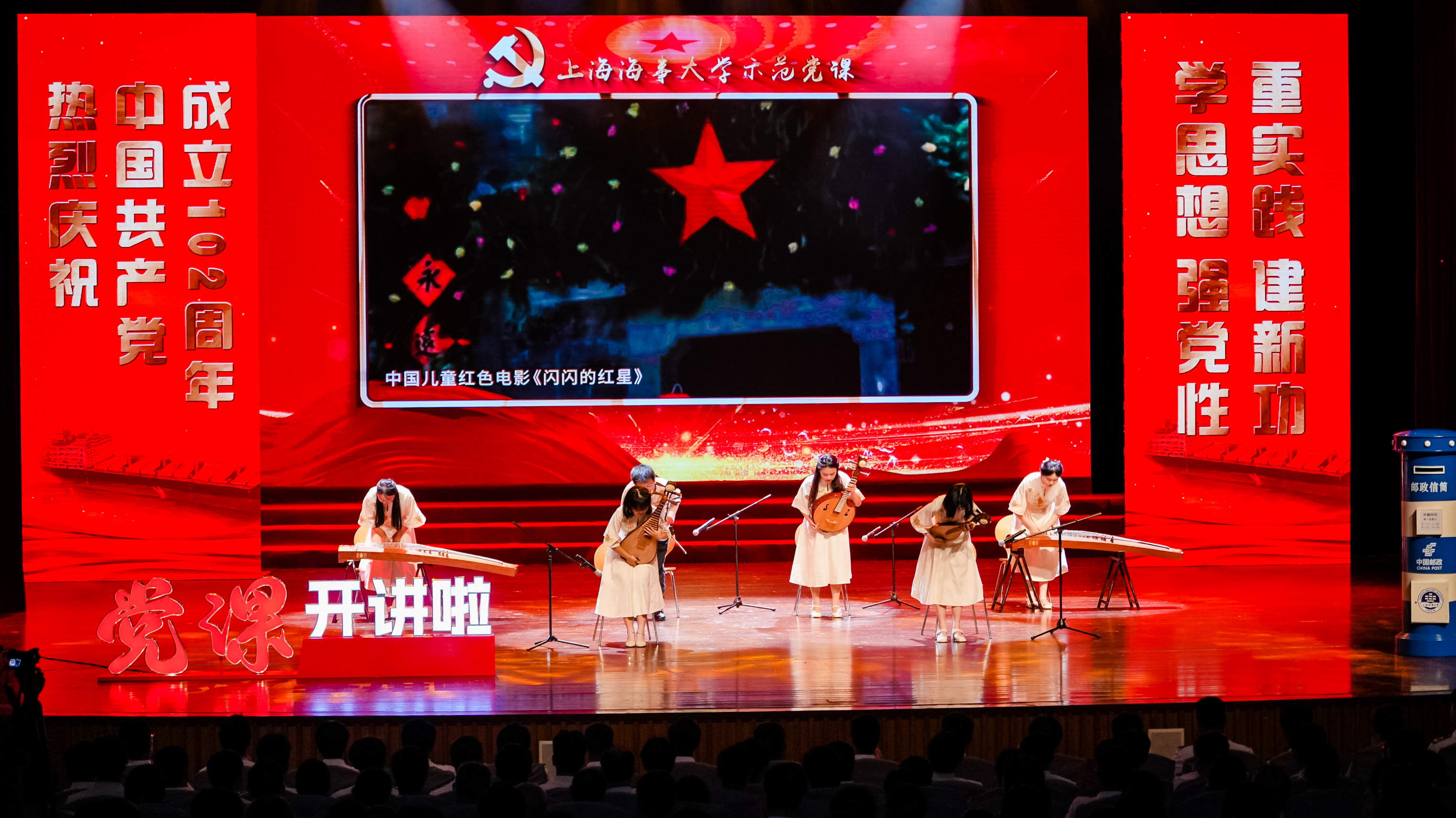 在《初心未曾改,薪火不曾熄––弘扬朱光亚科学家精神,实现科技自立自强》演讲节目中,来自上海朱光亚战略科技研究院的马倩登台与校主持团的同学携手诠释“何为科学家精神?”鼓舞海大师生发扬科学家精神,投身海洋强国、航运强国建设,为实现科技自立自强而努力。歌舞表演《领航》展现了海大人在中国共产党的领航下,面对风险挑战,不畏艰险,勇于拼搏的风采。最后,示范党课在全场师生一同高唱《没有共产党就没有新中国》的歌声中落下帷幕。