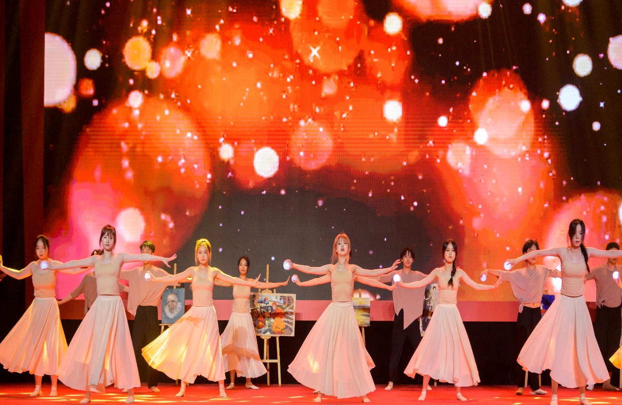 在“踔厉·奋进”篇章中,商船学院的《我心中的红》,利用道具、灯光和丰富的舞蹈动作,歌颂伟大建党精神;信息工程学院的《书香逐梦》展现青年学子以书卷展宏图,青春不止,追梦不息的形象;经济管理学院的《飞袂黛影》犹如塑造一副充满自然意境的图画,彰显着无比优雅的国风风采;马克思主义学院的《“星”火永相传》呈现出了新时代青年薪火相传的场景,生动表现生命不息的景象。