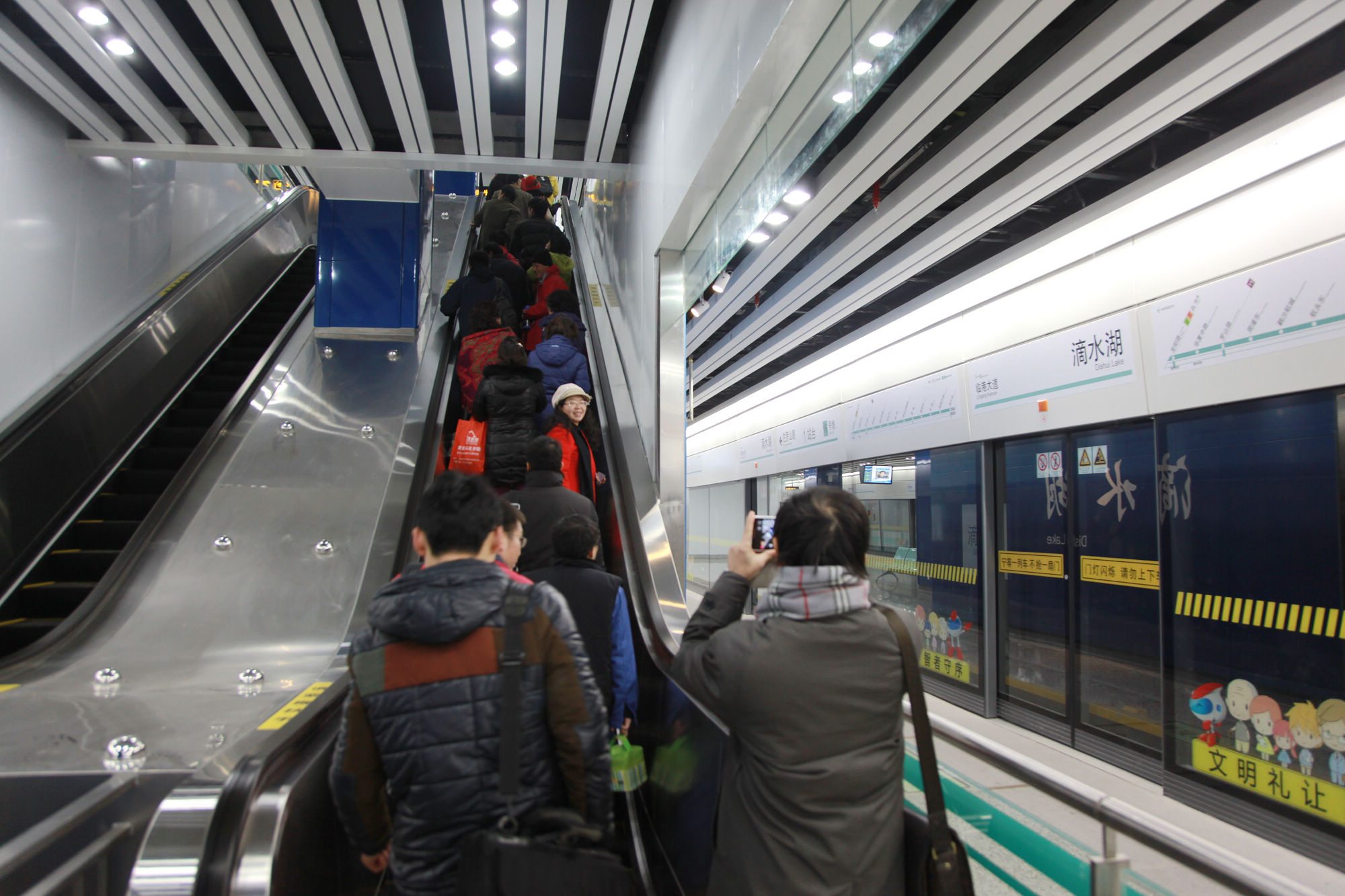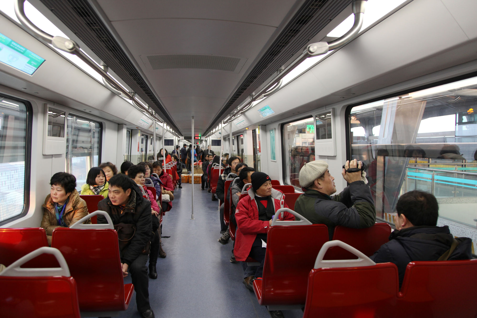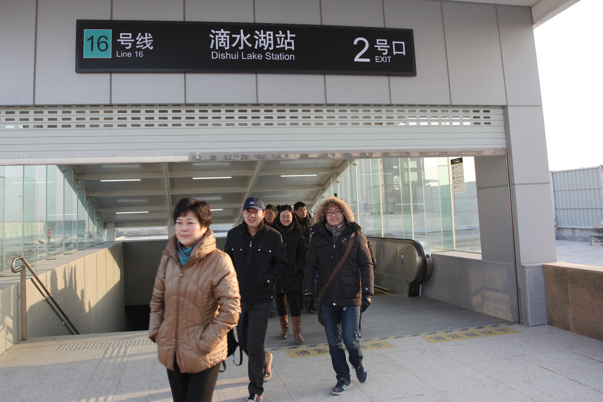 因16号线大部分在地面上行驶,列车采用的车窗更大,视野也更为开阔。在晨曦中,窗外的田野、民居、野生动物等景色尽收眼底,十分迷人。据老师们反映,乘坐16号地铁较其他交通工具舒适一些。列车采用了类似火车的横排座椅,每节车厢里还设置了相对的数排座椅。教工们相对而坐,一路谈笑,没有疲倦感。