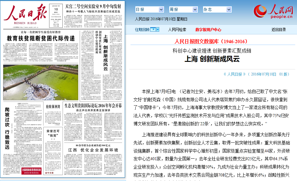 人民日报:科创中心建设提速 创新要素汇聚成链 上海 创新渐成风云