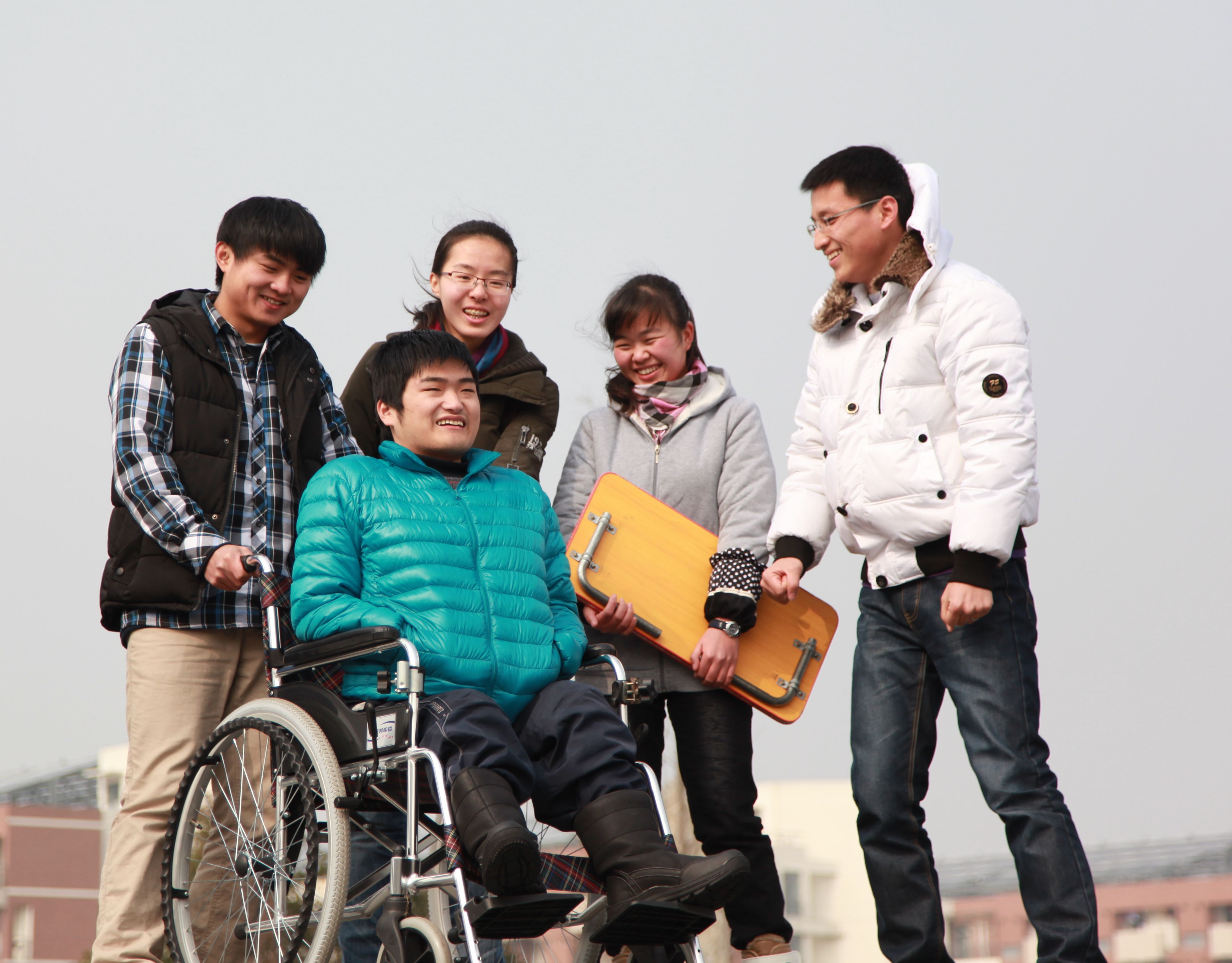 学院专门组建了服务唐旭的志愿者队伍“旭日东升”小分队,为他提供全方位的志愿服务。“旭”取自唐旭的“旭”,“日”代表阳光和希望,饱含了对唐旭深深的祝愿。小分队目前由32名学生志愿者组成,从唐旭报到那天起,就负责他在校一切出行工作。从宿舍到教室,往返一次800多米,一个学期里志愿者们推着唐旭行走了200多公里。志愿者们坚定地表示,大学四年,他们会一直推着唐旭走下去。